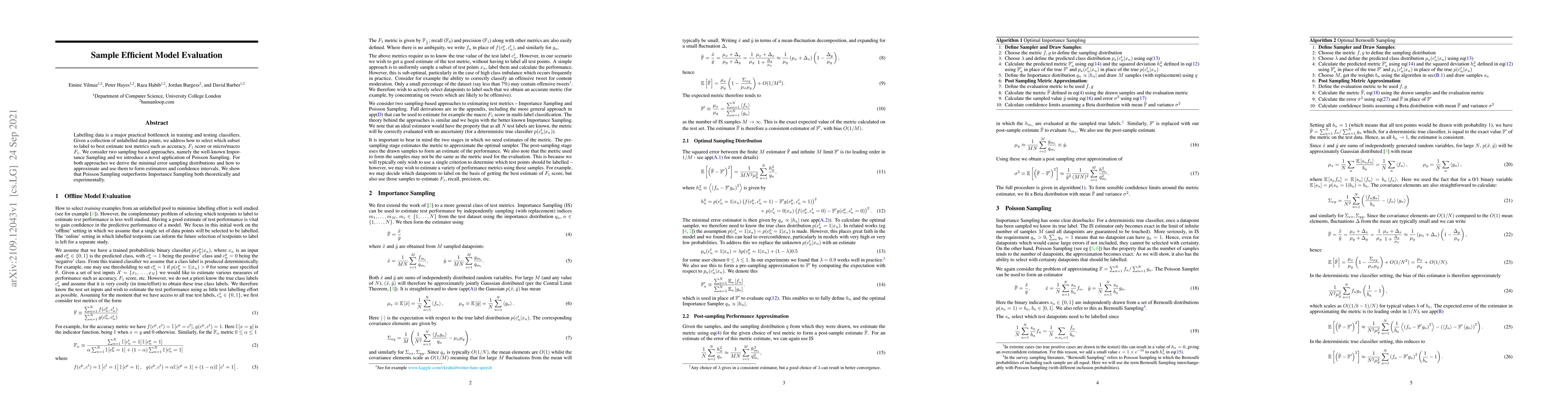 Labelling data is a major practical bottleneck in training and testing classifiers. Given a collection of unlabelled data points, we address how to select which subset to label to best estimate test metrics such as accuracy, $F_1$ score or micro/macro $F_1$. We consider two sampling based approaches, namely the well-known Importance Sampling and we introduce a novel application of Poisson Sampling. For both approaches we derive the minimal error sampling distributions and how to approximate and use them to form estimators and confidence intervals. We show that Poisson Sampling outperforms Importance Sampling both theoretically and experimentally.