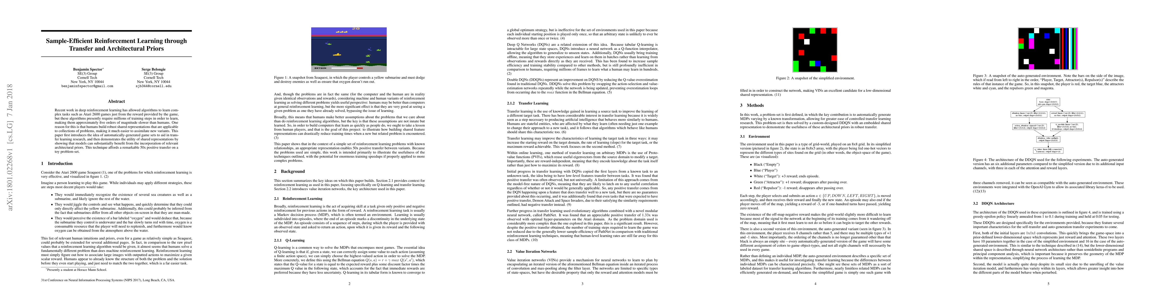 Recent work in deep reinforcement learning has allowed algorithms to learn complex tasks such as Atari 2600 games just from the reward provided by the game, but these algorithms presently require millions of training steps in order to learn, making them approximately five orders of magnitude slower than humans. One reason for this is that humans build robust shared representations that are applicable to collections of problems, making it much easier to assimilate new variants. This paper first introduces the idea of automatically-generated game sets to aid in transfer learning research, and then demonstrates the utility of shared representations by showing that models can substantially benefit from the incorporation of relevant architectural priors. This technique affords a remarkable 50x positive transfer on a toy problem-set.