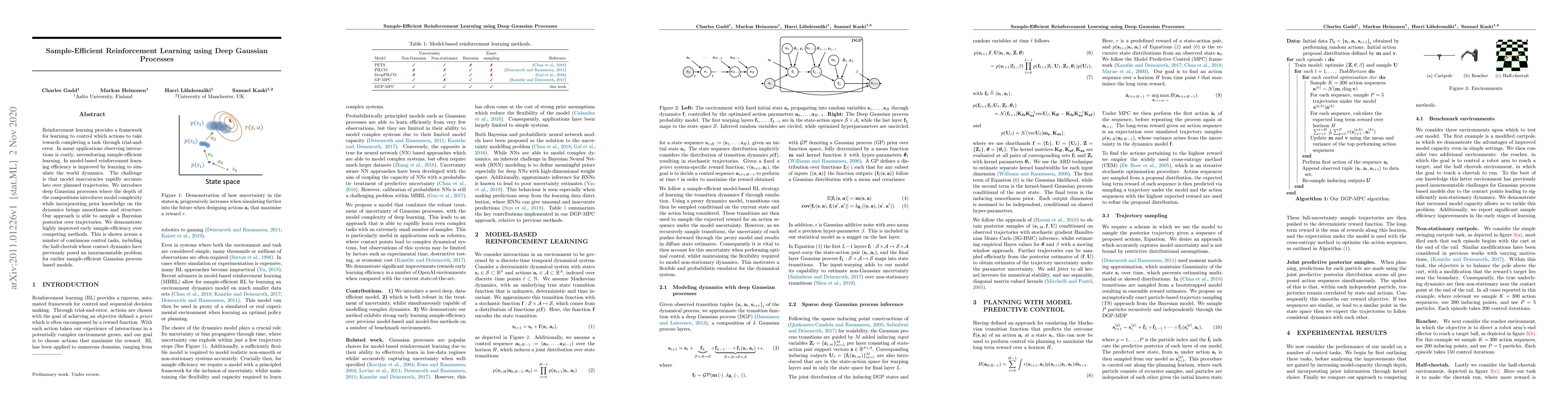 This paper proposes deep Gaussian processes for sample-efficient reinforcement learning, combining model complexity with prior knowledge to simulate world dynamics and improve early sample efficiency, demonstrated across various continuous control tasks. The approach notably solves previously intractable problems, such as the half-cheetah's contact dynamics.