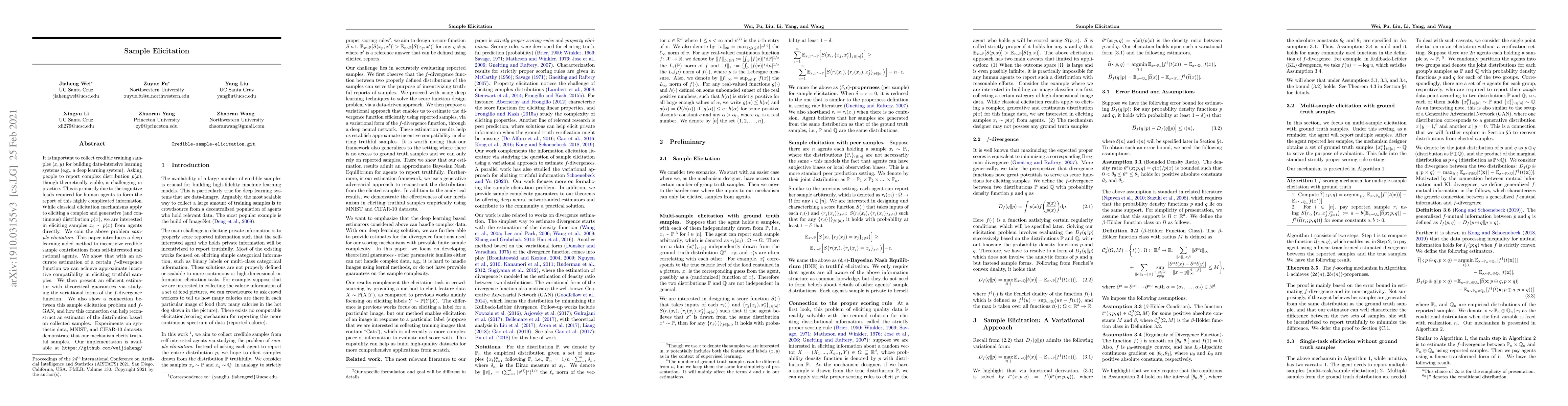 This paper proposes a deep learning-aided method to elicit credible training samples directly from self-interested agents, addressing the challenge of cognitive load in traditional elicitation. It introduces an efficient estimator with theoretical guarantees based on $f$-divergence functions, demonstrating its effectiveness through experiments on various datasets.
