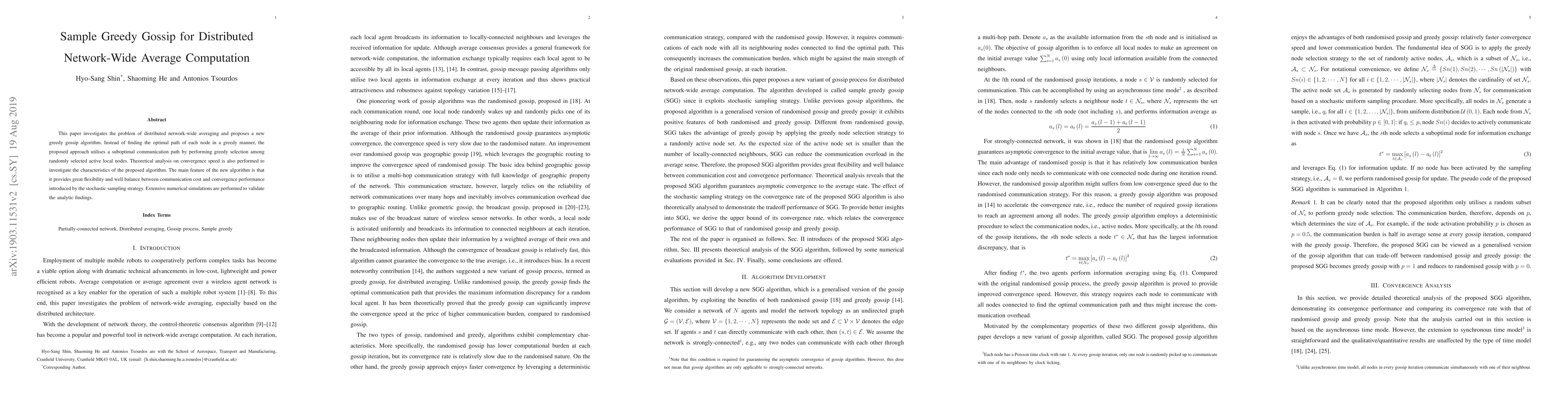 This paper investigates the problem of distributed network-wide averaging and proposes a new greedy gossip algorithm. Instead of finding the optimal path of each node in a greedy manner, the proposed approach utilises a suboptimal communication path by performing greedy selection among randomly selected active local nodes. Theoretical analysis on convergence speed is also performed to investigate the characteristics of the proposed algorithm. The main feature of the new algorithm is that it provides great flexibility and well balance between communication cost and convergence performance introduced by the stochastic sampling strategy. Extensive numerical simulations are performed to validate the analytic findings.