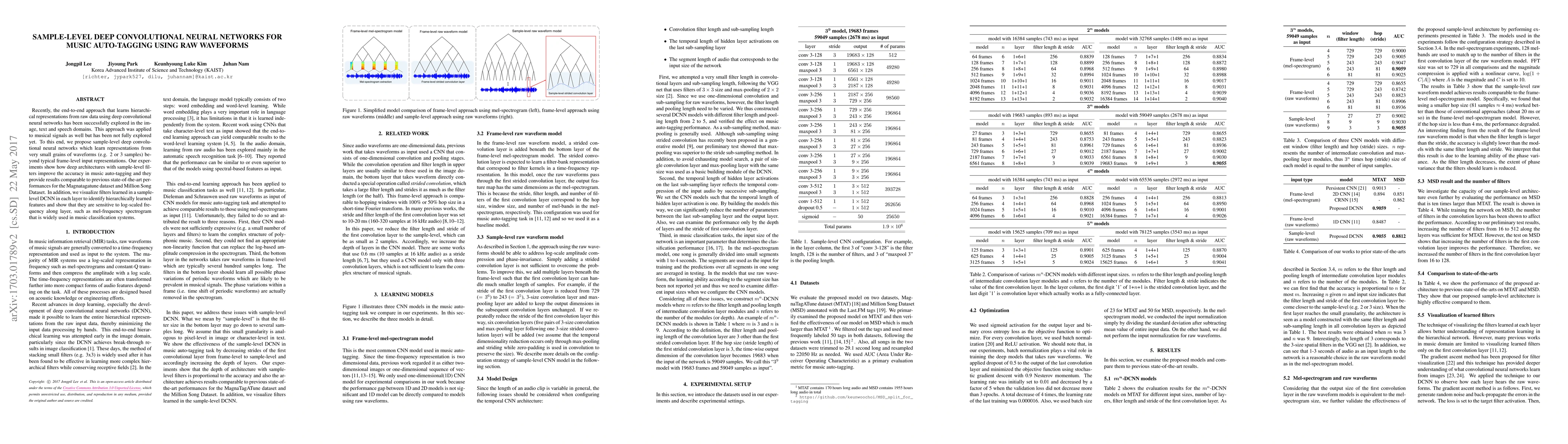 Proposed a novel DCNN model for music auto-tagging using raw waveforms as input and demonstrated its effectiveness on two datasets