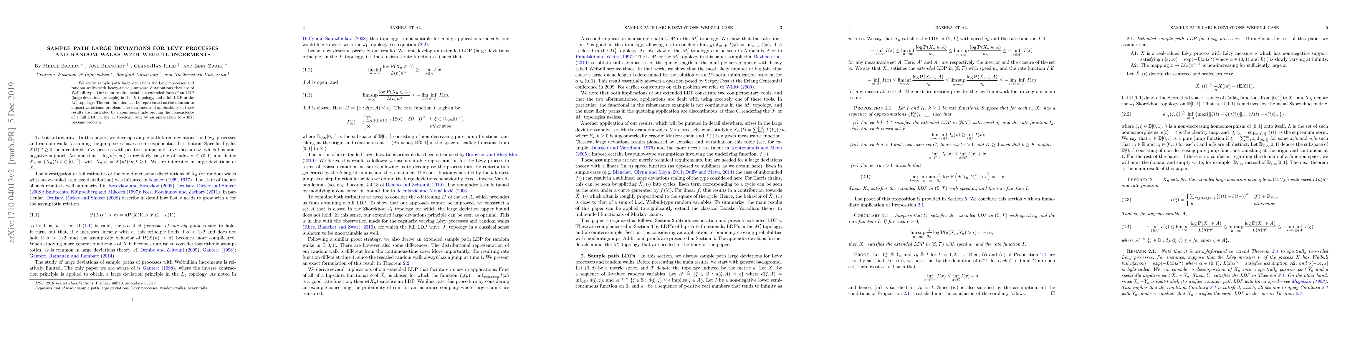 We study sample-path large deviations for L\'evy processes and random walks with heavy-tailed jump-size distributions that are of Weibull type. Our main results include an extended form of an LDP (large deviations principle) in the $J_1$ topology, and a full LDP in the $M_1'$ topology. The rate function can be represented as the solution to a quasi-variational problem. The sharpness and applicability of these results are illustrated by a counterexample proving the nonexistence of a full LDP in the $J_1$ topology, and by an application to a first passage problem.