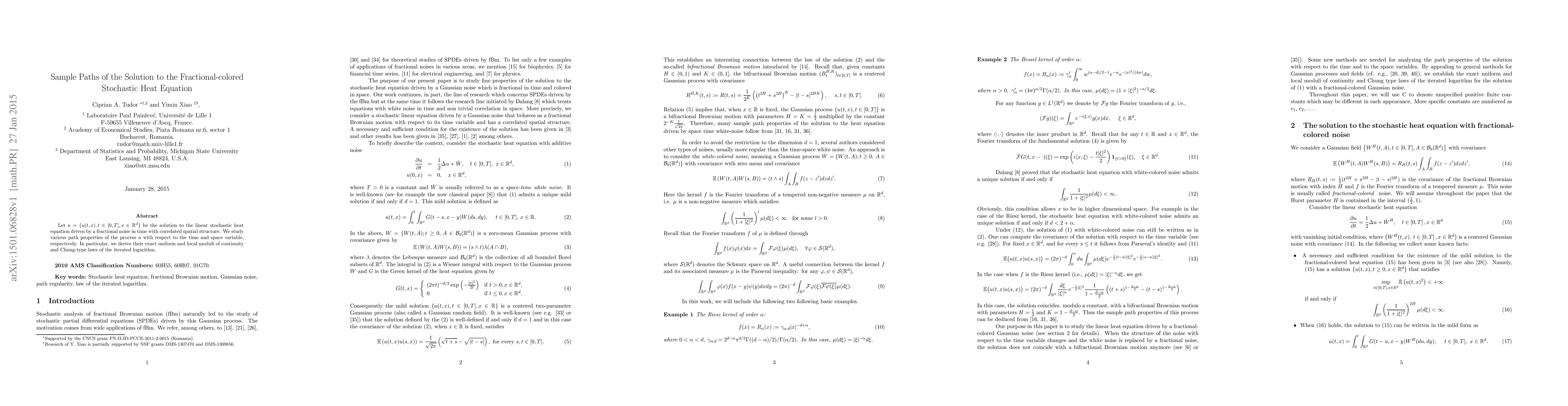 Let u = {u(t, x), t $\in$ [0, T ], x $\in$ R d } be the solution to the linear stochastic heat equation driven by a fractional noise in time with correlated spatial structure. We study various path properties of the process u with respect to the time and space variable, respectively. In particular, we derive their exact uniform and local moduli of continuity and Chung-type laws of the iterated logarithm.