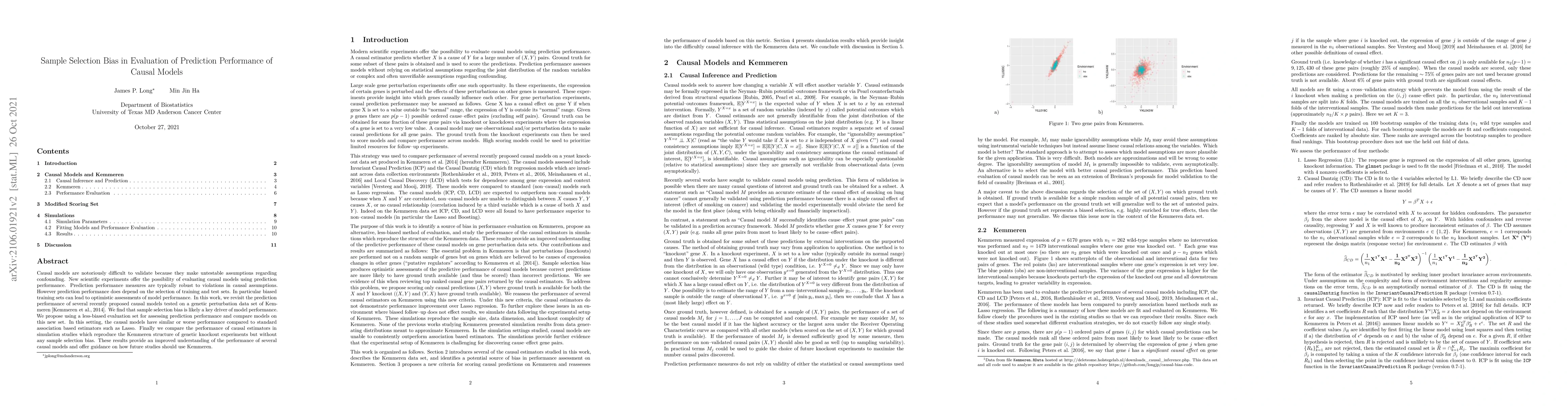 Researchers found that sample selection bias can significantly affect the performance of causal models in evaluating prediction accuracy. They propose using a less-biased evaluation set to assess model performance more accurately.