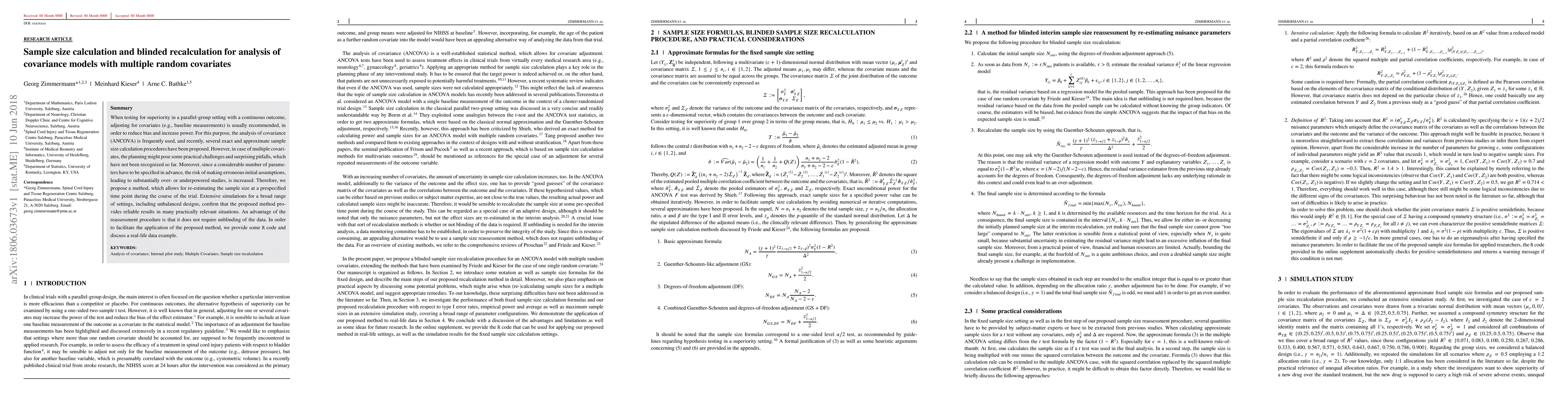 When testing for superiority in a parallel-group setting with a continuous outcome, adjusting for covariates (e.g., baseline measurements) is usually recommended, in order to reduce bias and increase power. For this purpose, the analysis of covariance (ANCOVA) is frequently used, and recently, several exact and approximate sample size calculation procedures have been proposed. However, in case of multiple covariates, the planning might pose some practical challenges and surprising pitfalls, which have not been recognized so far. Moreover, since a considerable number of parameters have to be specified in advance, the risk of making erroneous initial assumptions, leading to substantially over- or underpowered studies, is increased. Therefore, we propose a method, which allows for re-estimating the sample size at a prespecified time point during the course of the trial. Extensive simulations for a broad range of settings, including unbalanced designs, confirm that the proposed method provides reliable results in many practically relevant situations. An advantage of the reassessment procedure is that it does not require unblinding of the data. In order to facilitate the application of the proposed method, we provide some R code and discuss a real-life data example.