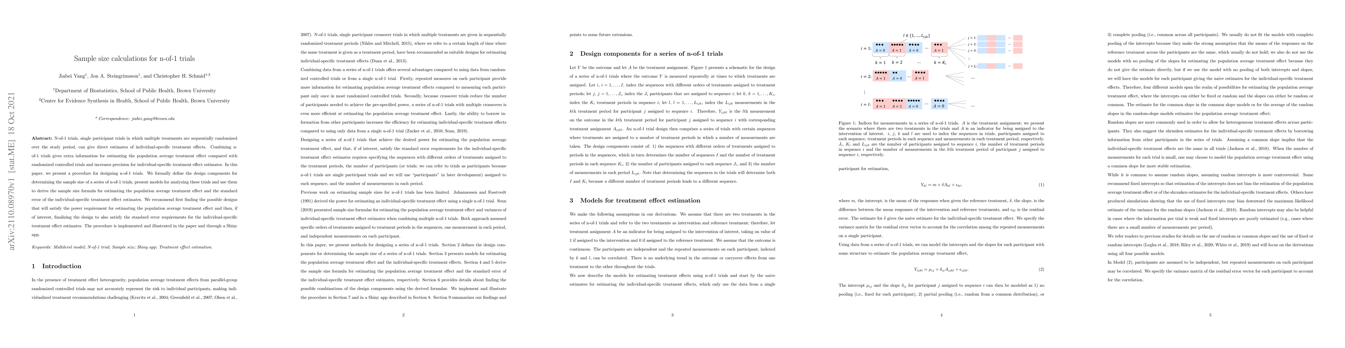 This paper outlines a procedure for designing n-of-1 trials, detailing methods to determine sample sizes for estimating both population average treatment effects and individual-specific treatment effects. It recommends prioritizing power requirements for population estimates before considering precision for individual effects.
