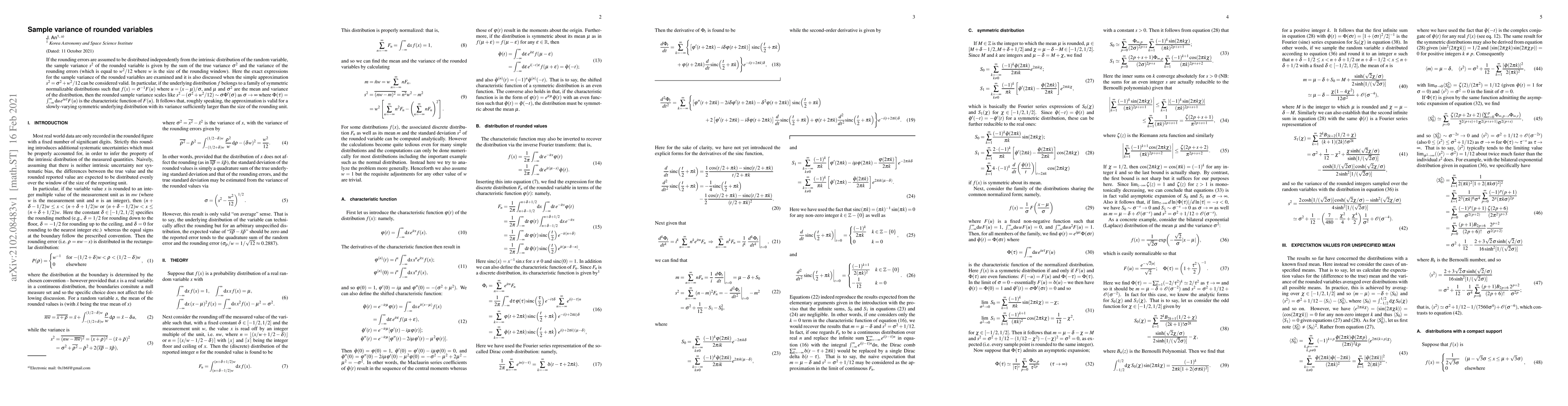 This paper examines the exact expressions for the sample variance of rounded variables and discusses the validity of the approximation $s^2=\sigma^2+w^2/12$. It shows that for symmetric underlying distributions with large variance compared to the rounding window size, the approximation holds as the variance increases.