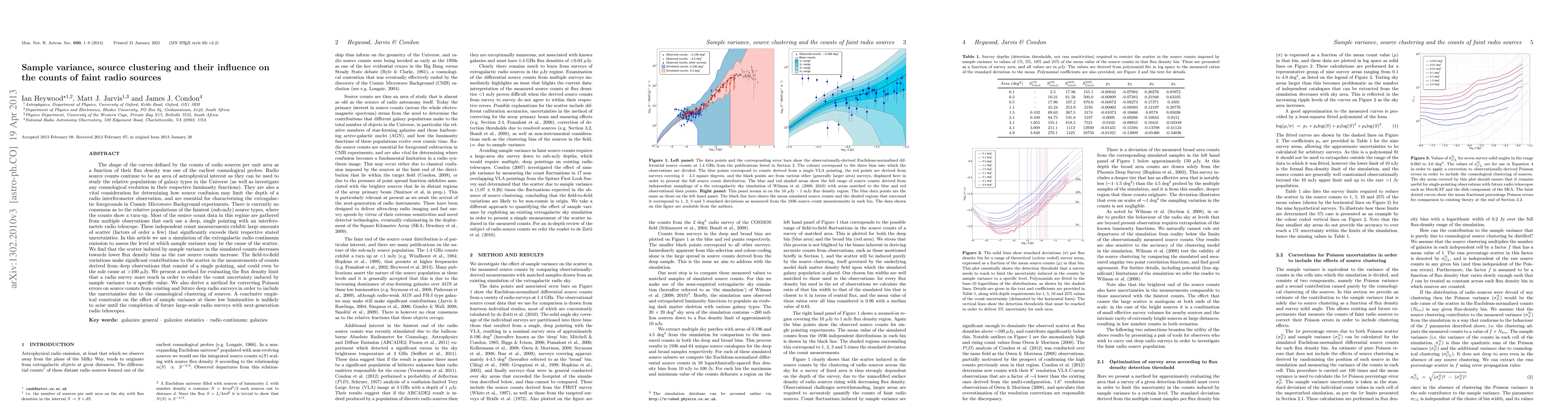 This paper investigates the influence of sample variance and source clustering on the counts of faint radio sources, finding that field-to-field variations significantly contribute to the observed scatter, potentially explaining discrepancies in the faintest source populations. The study proposes methods to assess and correct for these uncertainties in future radio surveys.