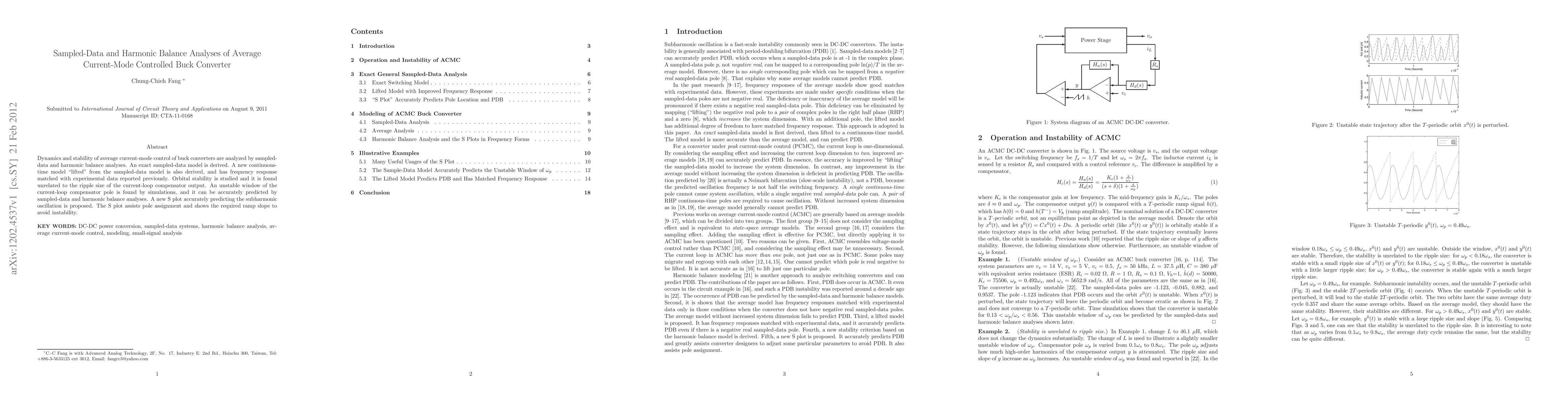 This paper analyzes the dynamics and stability of average current-mode control in buck converters using sampled-data and harmonic balance methods. It introduces a new continuous-time model and finds that orbital stability is unaffected by the current-loop compensator output ripple, while identifying an unstable region for the compensator pole through simulations.