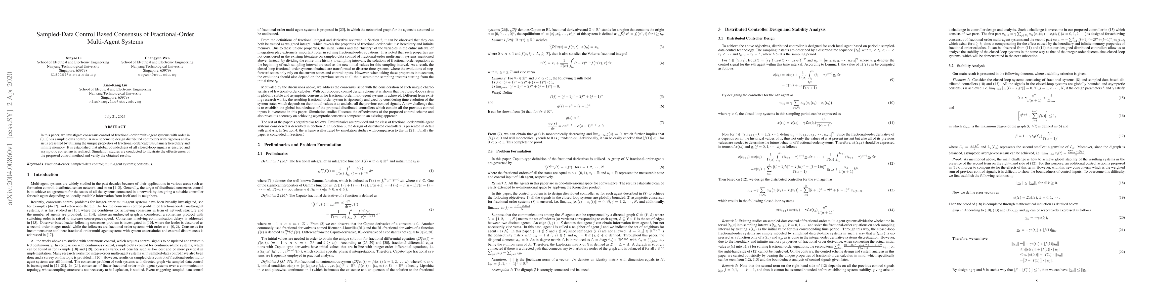 This paper proposes a sampled-data control method for achieving consensus in fractional-order multi-agent systems, utilizing the unique properties of fractional-order calculus. Simulation results validate the effectiveness of the approach, ensuring global boundedness and asymptotic consensus.