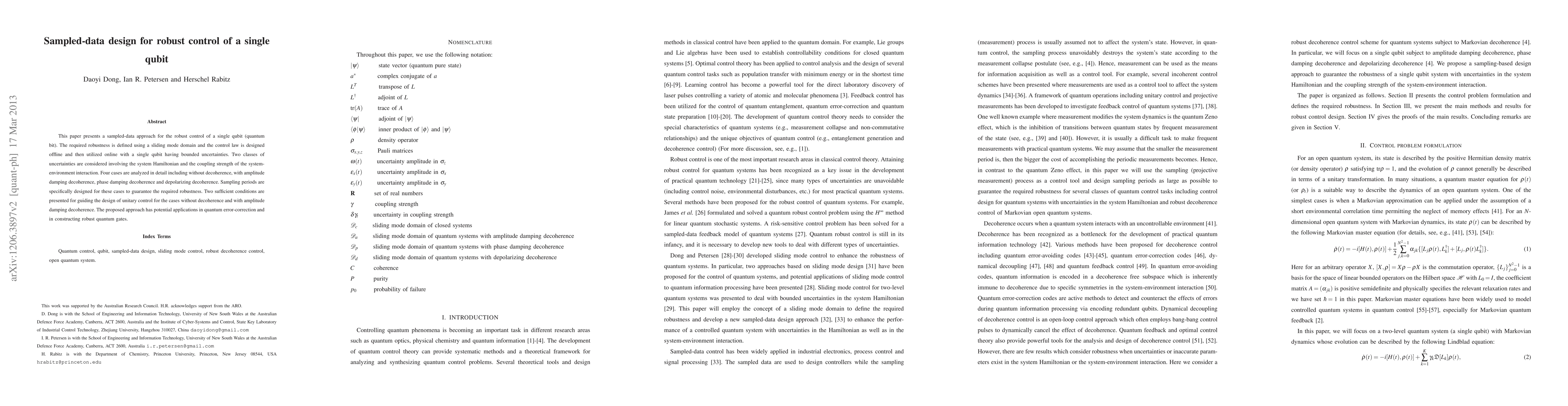This paper proposes a sampled-data control method for robustly managing a single qubit's dynamics under various decoherence scenarios, ensuring robustness through sliding mode control. The approach is designed offline and applied online, with specific sampling periods tailored to different decoherence types for maintaining control effectiveness.