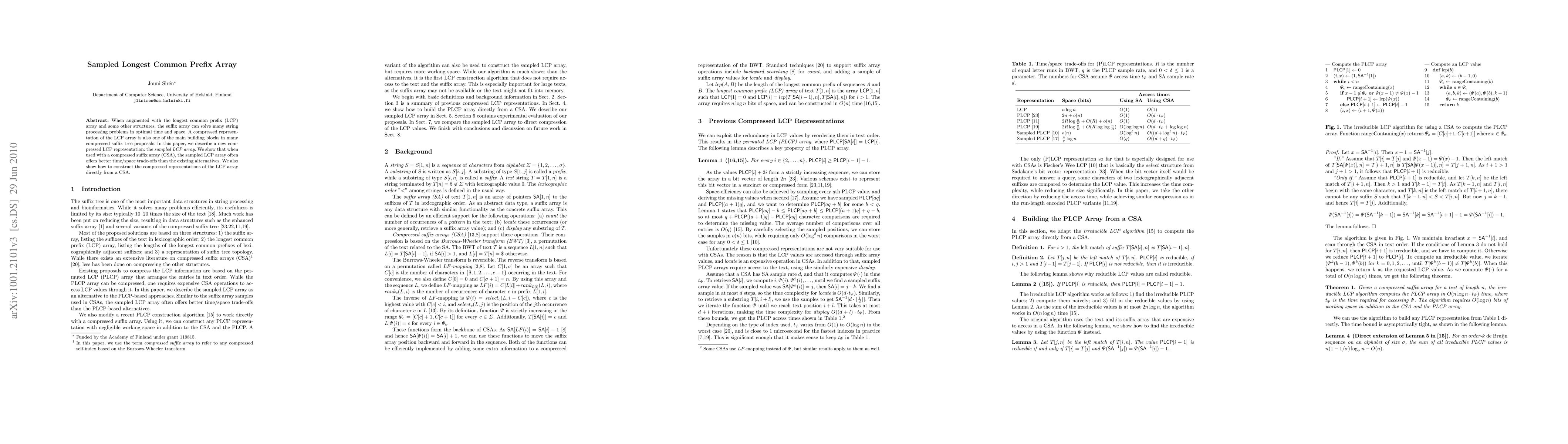 This paper introduces the sampled LCP array, a compressed representation of the longest common prefix array, which, when paired with a compressed suffix array, often provides better time/space trade-offs compared to existing methods. It also outlines a method for constructing this representation directly from a compressed suffix array.
