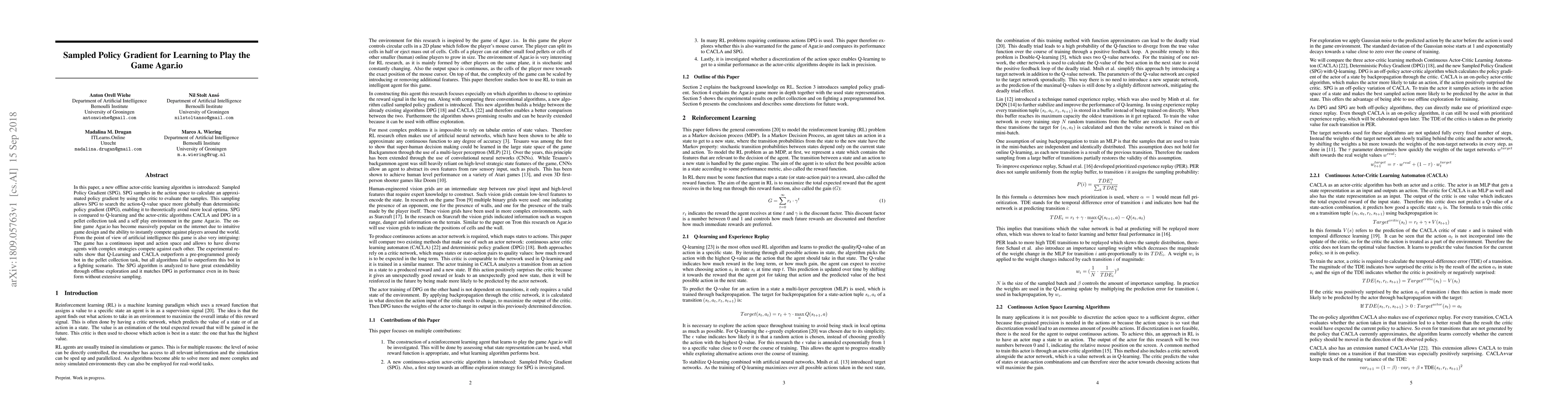 A new algorithm called Sampled Policy Gradient (SPG) is proposed to improve learning in games like Agar.io, outperforming other methods in some tasks but not others.