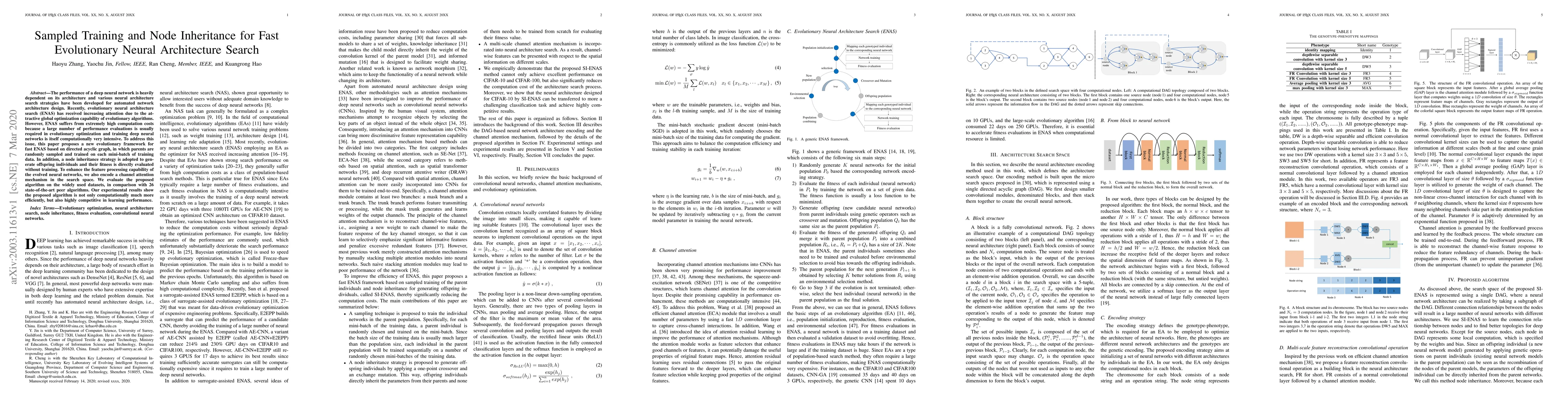 This paper proposes an efficient evolutionary framework for fast neural architecture search using sampled training and node inheritance strategies, significantly reducing computational costs while maintaining competitive performance on standard datasets compared to 26 state-of-the-art algorithms.