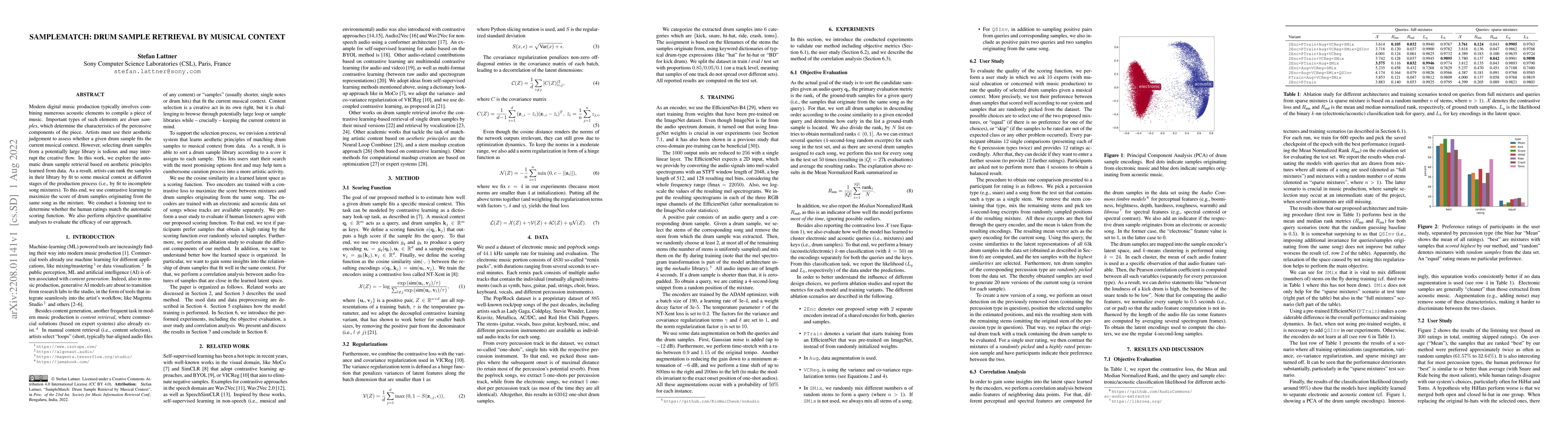 This paper presents SampleMatch, an automatic drum sample retrieval system that uses contrastive learning to rank drum samples based on their fit to a musical context. The system aims to assist artists in selecting suitable samples during music production, reducing the tediousness of manual selection and maintaining creative flow.