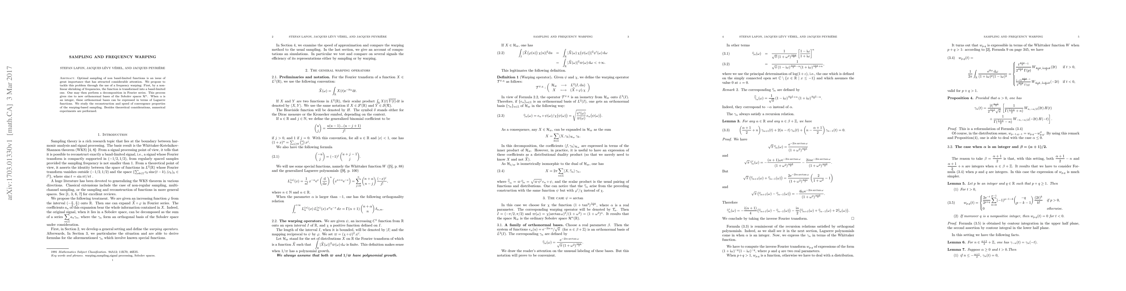 Optimal sampling of non band-limited functions is an issue of great importance that has attracted considerable attention. We propose to tackle this problem through the use of a frequency warping: First, by a nonlinear shrinking of frequencies, the function is transformed into a band-limited one. One may then perform a decomposition in Fourier series. This process gives rise to new orthonormal bases of the Sobolev spaces H^alpha. When alpha is an integer, these orthonormal bases can be expressed in terms of Laguerre functions. We study the reconstruction and speed of convergence properties of the warping-based sampling. Besides theoretical considerations, numerical experiments are performed.