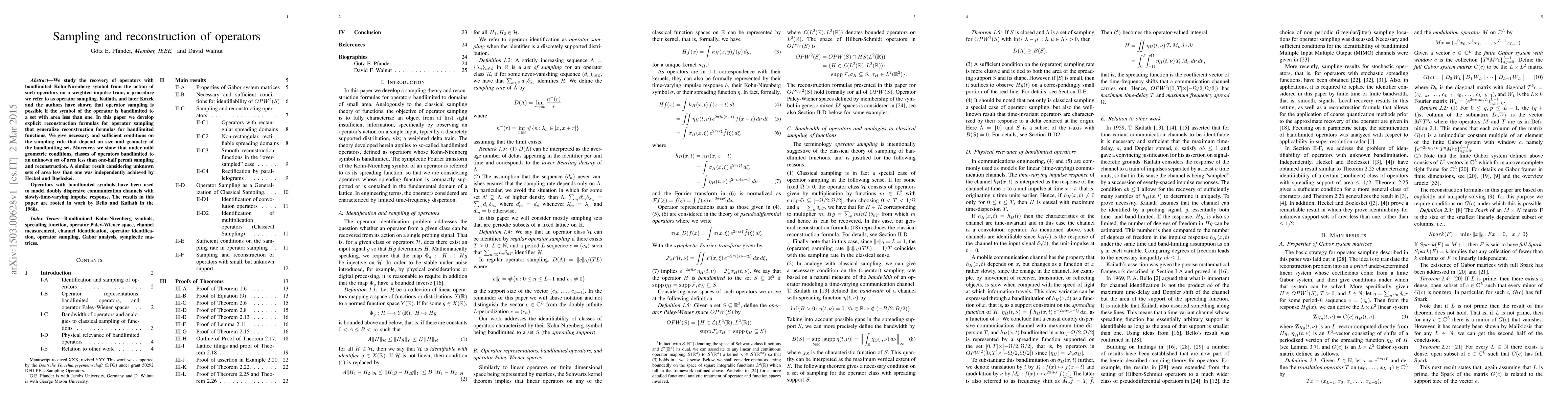 This paper develops explicit reconstruction formulas for sampling operators with bandlimited Kohn-Nirenberg symbols, providing necessary and sufficient conditions for the sampling rate based on the size and geometry of the bandlimiting set. It extends the theory to unknown sets of area less than one-half, with implications for modeling doubly dispersive communication channels.
