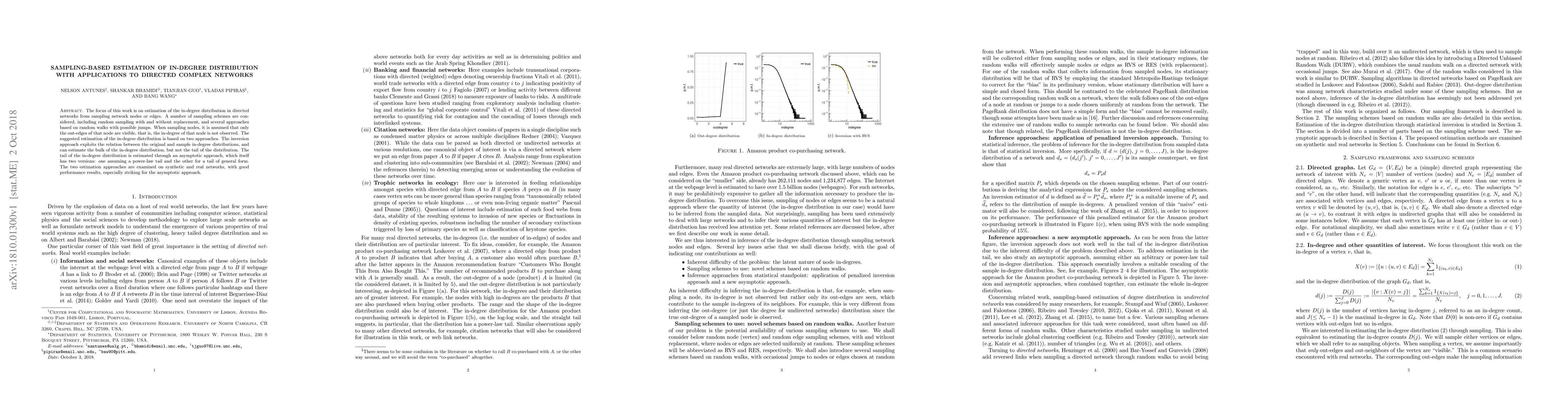 The focus of this work is on estimation of the in-degree distribution in directed networks from sampling network nodes or edges. A number of sampling schemes are considered, including random sampling with and without replacement, and several approaches based on random walks with possible jumps. When sampling nodes, it is assumed that only the out-edges of that node are visible, that is, the in-degree of that node is not observed. The suggested estimation of the in-degree distribution is based on two approaches. The inversion approach exploits the relation between the original and sample in-degree distributions, and can estimate the bulk of the in-degree distribution, but not the tail of the distribution. The tail of the in-degree distribution is estimated through an asymptotic approach, which itself has two versions: one assuming a power-law tail and the other for a tail of general form. The two estimation approaches are examined on synthetic and real networks, with good performance results, especially striking for the asymptotic approach.