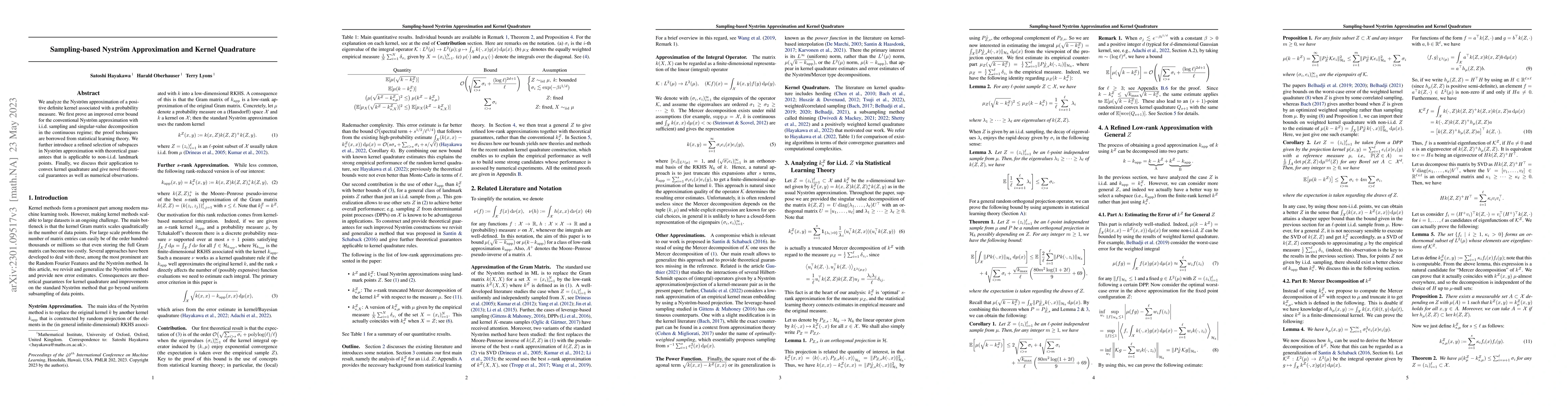This paper improves the Nyström approximation for positive definite kernels, providing a better error bound for i.i.d. sampling and introducing a refined method for non-i.i.d. landmark points, with applications to convex kernel quadrature and novel theoretical guarantees.