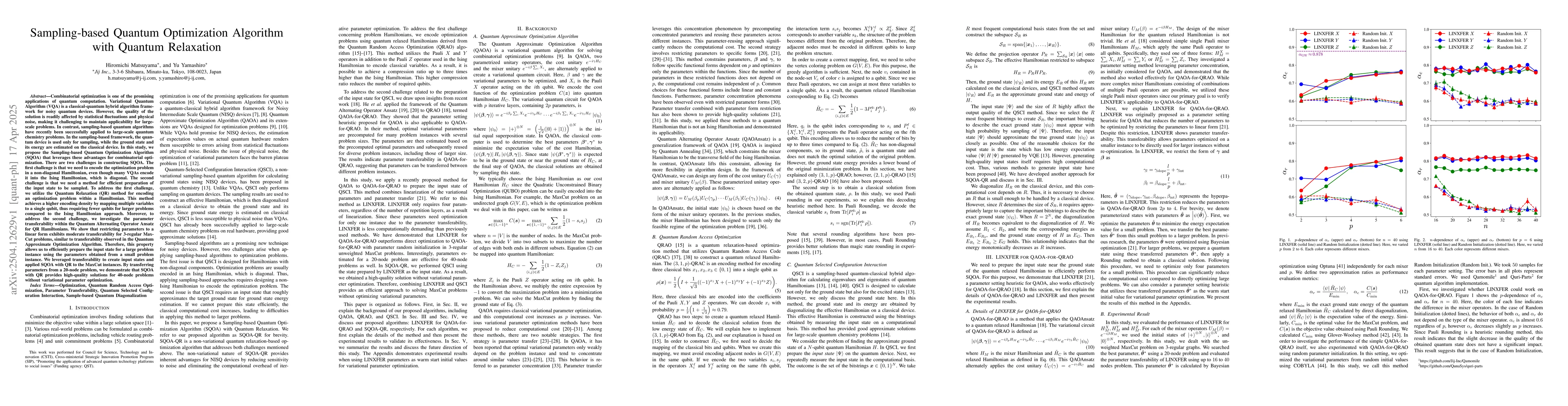 Researchers propose a new quantum optimization algorithm called Sampling-based Quantum Optimization Algorithm (SQOA) that uses quantum relaxation to improve solution quality for large-scale combinatorial optimization problems, achieving high-quality solutions for larger instances without retraining.
