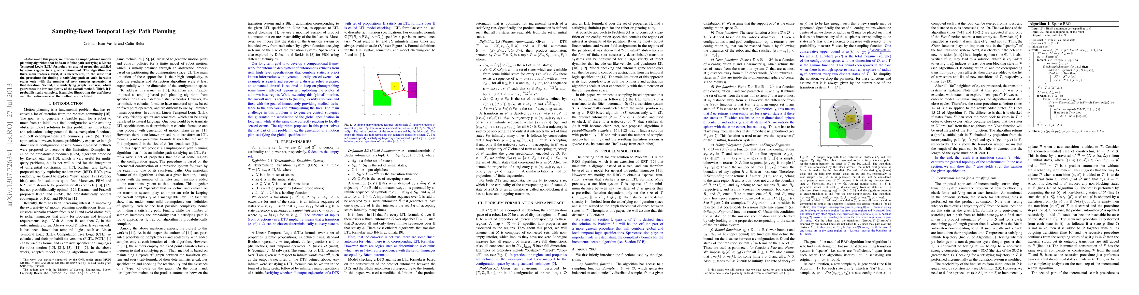 A new algorithm that uses sampling to plan paths in environments based on Linear Temporal Logic (LTL) formulas, offering incremental, sparse, and probabilistically complete motion planning.