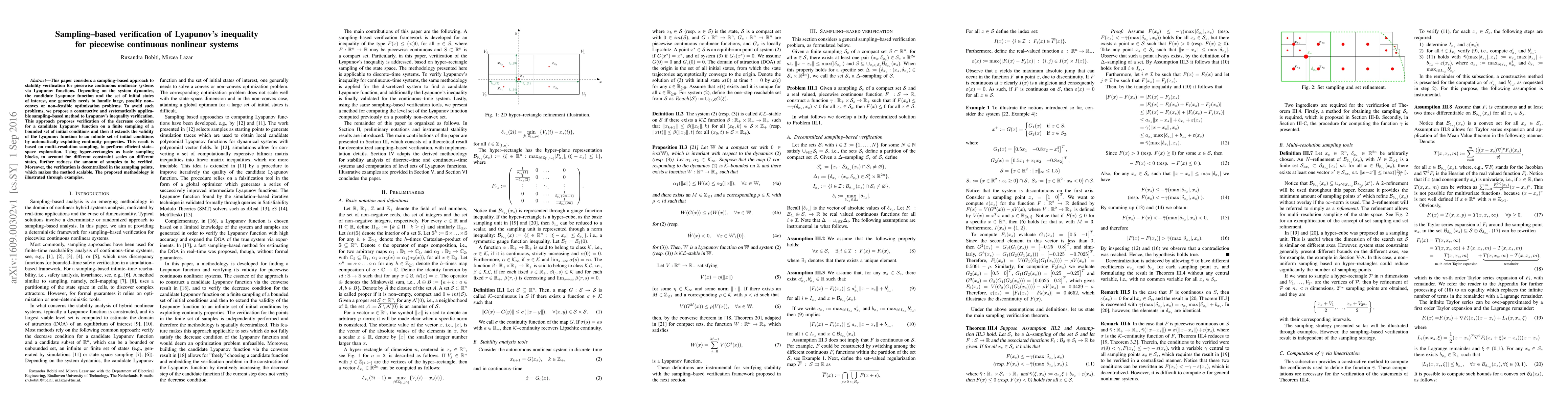 A new method for verifying Lyapunov's inequality in nonlinear systems using sampling is proposed, allowing for efficient and decentralized verification of stability.