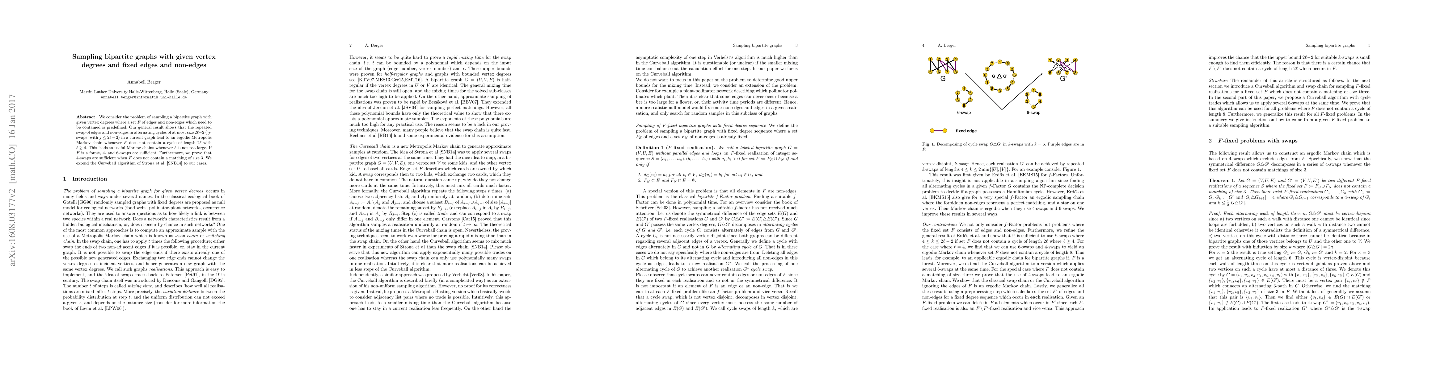 We consider the problem of sampling a bipartite graph with given vertex degrees where a set $F$ of edges and non-edges which need to be contained is predefined. Our general result shows that the repeated swap of edges and non-edges in alternating cycles of at most size $2\ell-2$ ('$j$-swaps' with $j \leq 2 \ell-2$) in a current graph lead to an ergodic Metropolis Markov chain whenever $F$ does not contain a cycle of length $2 \ell$ with $\ell \geq 4.$ This leads to useful Markov chains whenever $\ell$ is not too large. If $F$ is a forest, $4$- and $6$-swaps are sufficient. Furthermore, we prove that $4$-swaps are sufficient when $F$ does not contain a matching of size $3.$ We extend the Curveball algorithm of Strona et al. \cite{Strona2014b} to our cases.