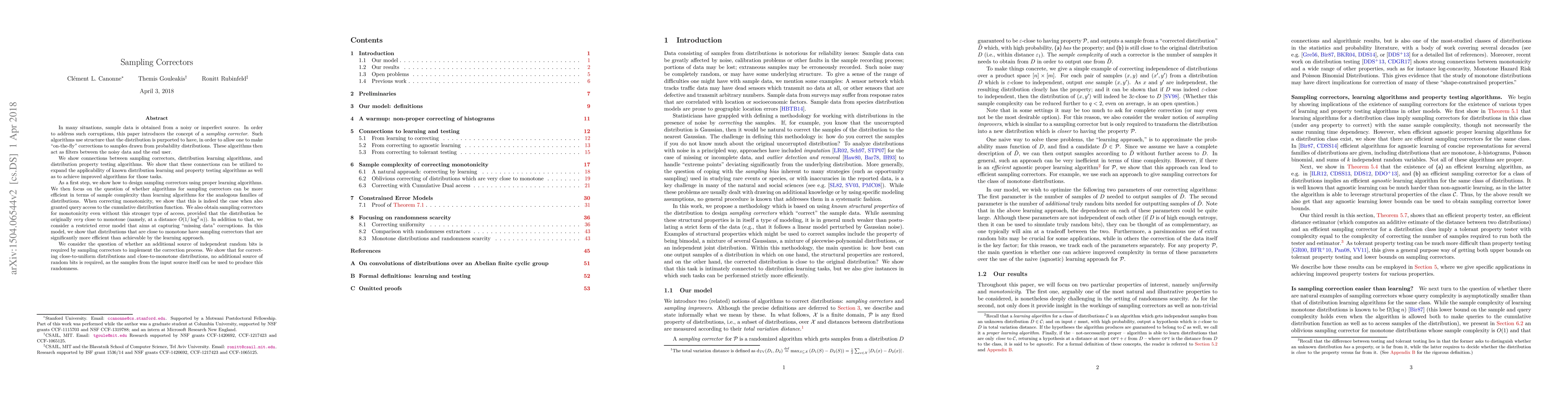 This paper introduces sampling correctors to address corruptions in sample data obtained from noisy sources, improving efficiency over traditional distribution learning algorithms for certain tasks.