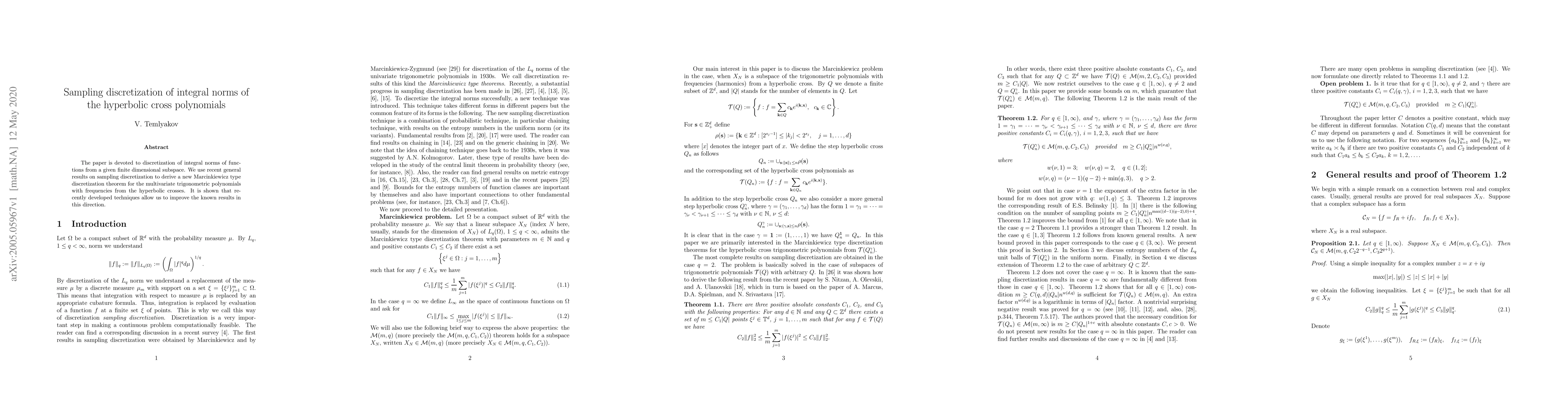 The paper presents a new Marcinkiewicz type discretization theorem for multivariate trigonometric polynomials with frequencies from hyperbolic crosses, leveraging recent sampling discretization results to enhance existing norms. Techniques developed in the study improve upon previously known results in this area.