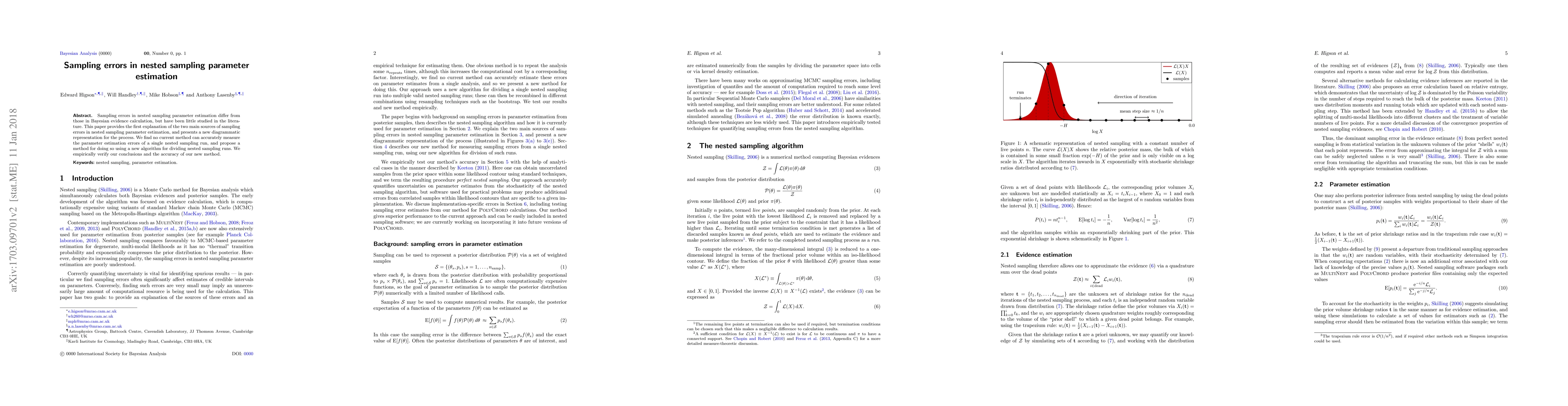 This paper identifies two main sources of sampling errors in nested sampling parameter estimation and introduces a new algorithm for accurately measuring these errors. It proposes a novel method for dividing nested sampling runs and verifies its effectiveness empirically.