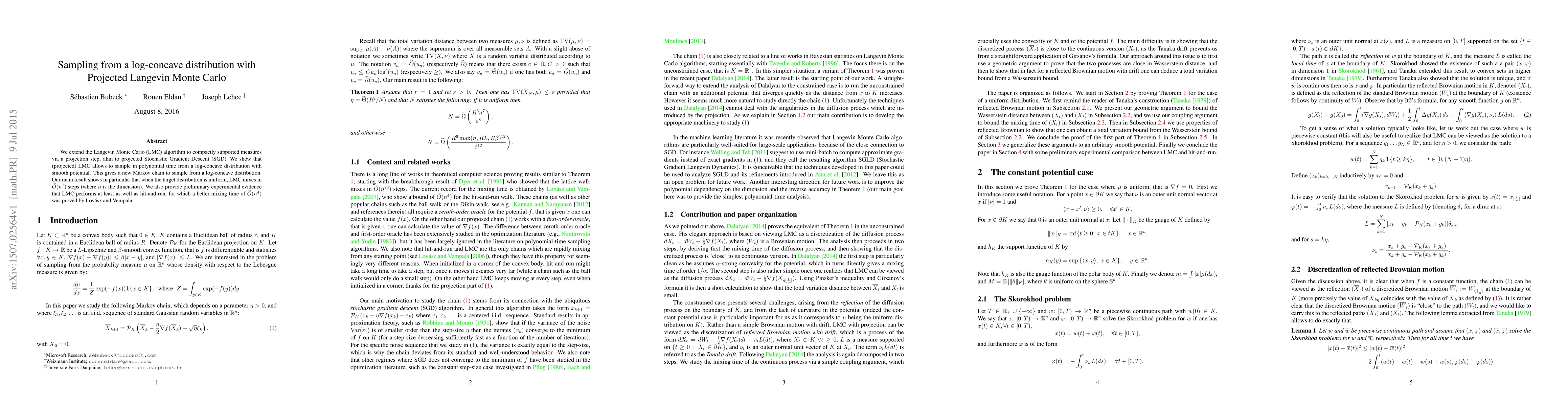 This paper introduces an enhanced Langevin Monte Carlo (LMC) algorithm for sampling from log-concave distributions through a projection step, achieving polynomial-time sampling. The authors demonstrate that this projected LMC mixes in $\tilde{O}(n^7)$ steps when the target is uniform, and provides experimental evidence that it performs competitively with hit-and-run sampling.