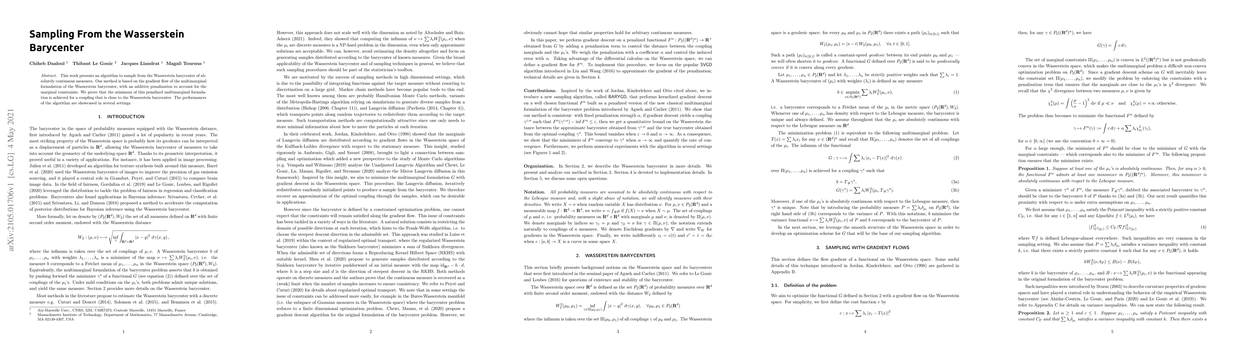 This paper introduces an algorithm to sample from the Wasserstein barycenter using gradient flow and penalization for marginal constraints. The method is demonstrated to achieve couplings close to the Wasserstein barycenter, with performance showcased in various settings.