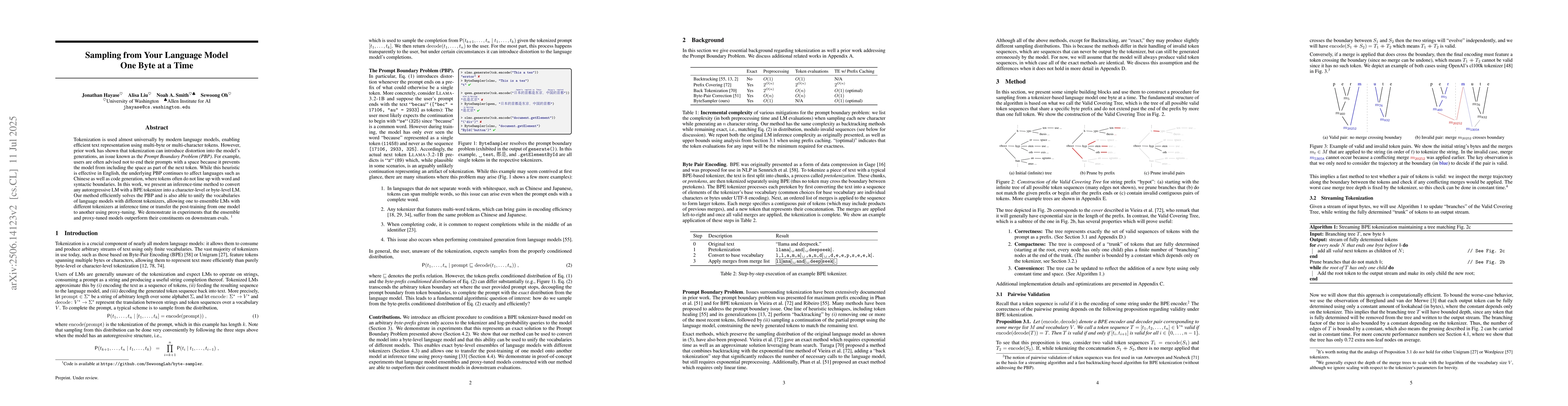 Tokenization is used almost universally by modern language models, enabling efficient text representation using multi-byte or multi-character tokens. However, prior work has shown that tokenization can introduce distortion into the model's generations. For example, users are often advised not to end their prompts with a space because it prevents the model from including the space as part of the next token. This Prompt Boundary Problem (PBP) also arises in languages such as Chinese and in code generation, where tokens often do not line up with syntactic boundaries. Additionally mismatching tokenizers often hinder model composition and interoperability. For example, it is not possible to directly ensemble models with different tokenizers due to their mismatching vocabularies. To address these issues, we present an inference-time method to convert any autoregressive LM with a BPE tokenizer into a character-level or byte-level LM, without changing its generative distribution at the text level. Our method efficient solves the PBP and is also able to unify the vocabularies of language models with different tokenizers, allowing one to ensemble LMs with different tokenizers at inference time as well as transfer the post-training from one model to another using proxy-tuning. We demonstrate in experiments that the ensemble and proxy-tuned models outperform their constituents on downstream evals.