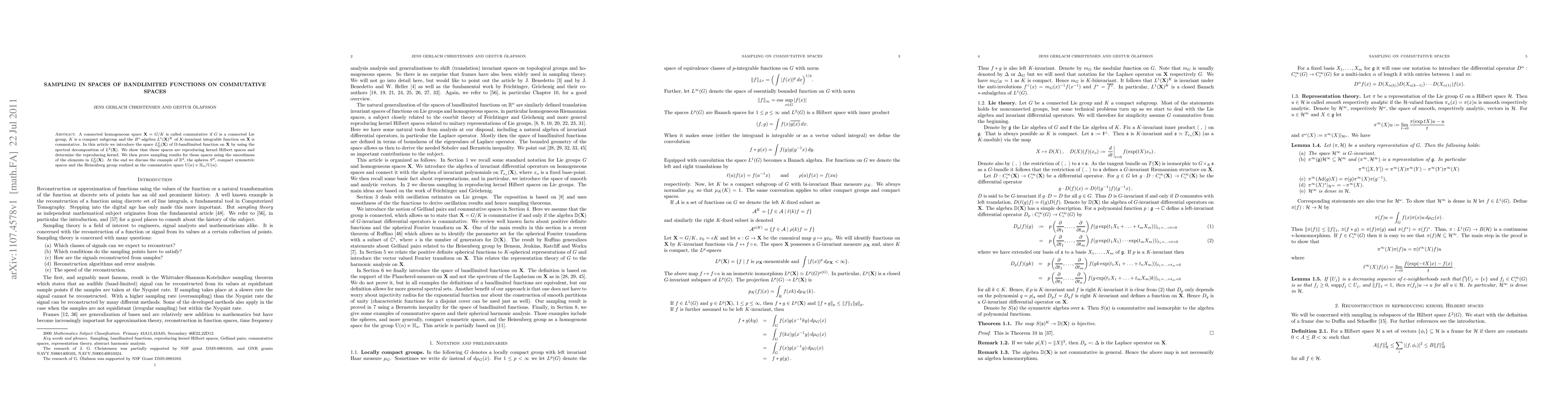 This paper introduces a new space of bandlimited functions on commutative spaces, showing it's a reproducing kernel Hilbert space with a determined kernel. It then proves sampling results using the smoothness of elements in these spaces, with applications to various special cases.