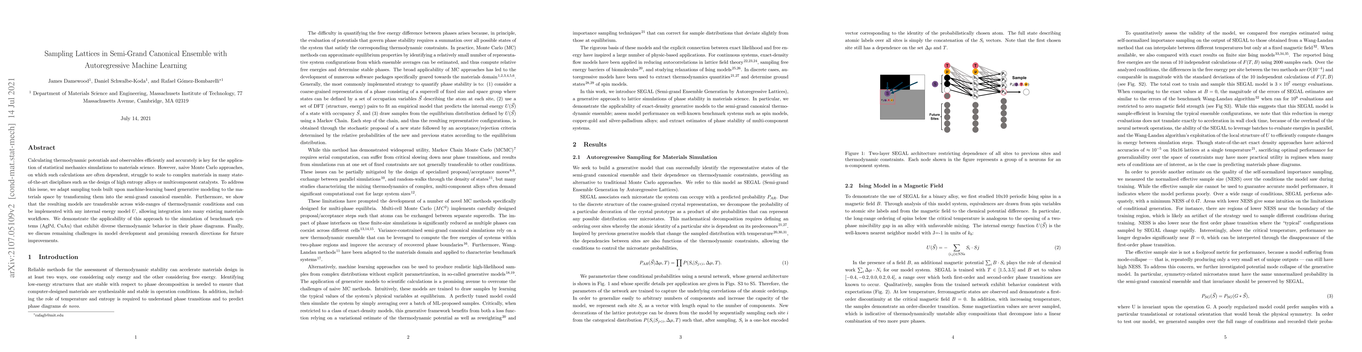 Calculating thermodynamic potentials and observables efficiently and accurately is key for the application of statistical mechanics simulations to materials science. However, naive Monte Carlo approaches, on which such calculations are often dependent, struggle to scale to complex materials in many state-of-the-art disciplines such as the design of high entropy alloys or multicomponent catalysts. To address this issue, we adapt sampling tools built upon machine-learning based generative modeling to the materials space by transforming them into the semi-grand canonical ensemble. Furthermore, we show that the resulting models are transferable across wide-ranges of thermodynamic conditions and can be implemented with any internal energy model U, allowing integration into many existing materials workflows. We demonstrate the applicability of this approach to the simulation of benchmark systems (AgPd, CuAu) that exhibit diverse thermodynamic behavior in their phase diagrams. Finally, we discuss remaining challenges in model development and promising research directions for future improvements.
