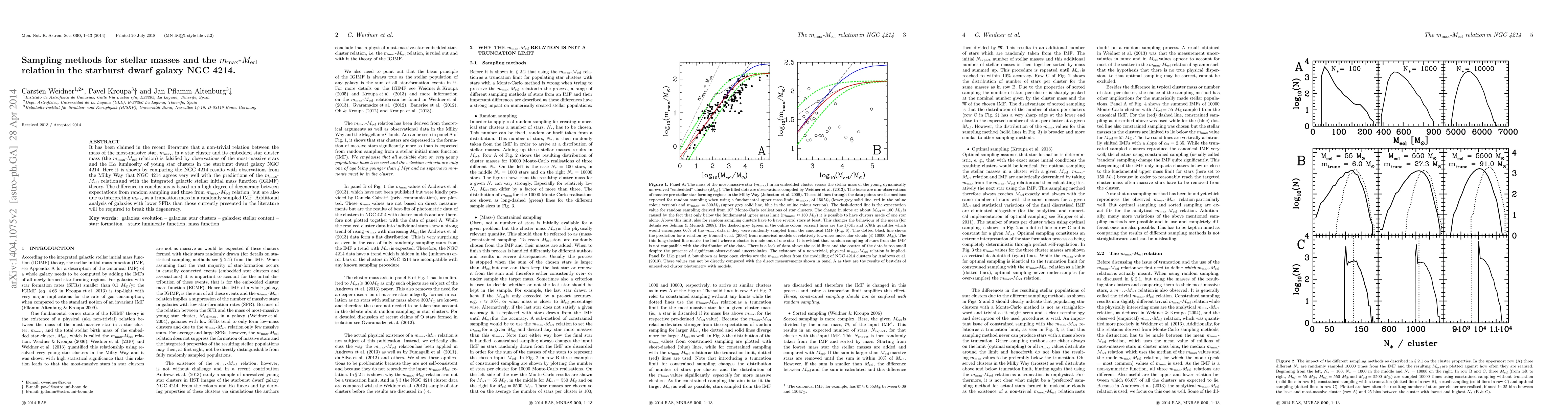 The study confirms a non-trivial relation between the mass of the most-massive star and the embedded cluster mass in the galaxy NGC 4214, contradicting previous claims that it falsifies this relationship.