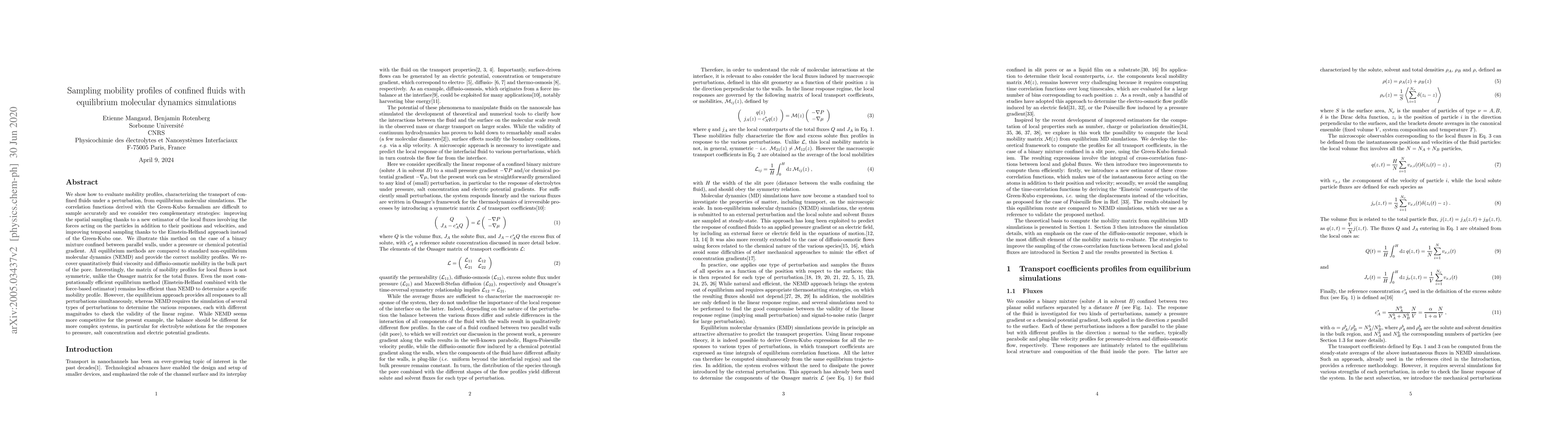 This paper presents equilibrium molecular dynamics methods to evaluate mobility profiles of confined fluids, comparing them to non-equilibrium methods. It introduces a new force-based estimator and the Einstein-Helfand approach to improve sampling accuracy, demonstrating their effectiveness for a binary mixture under gradient conditions.
