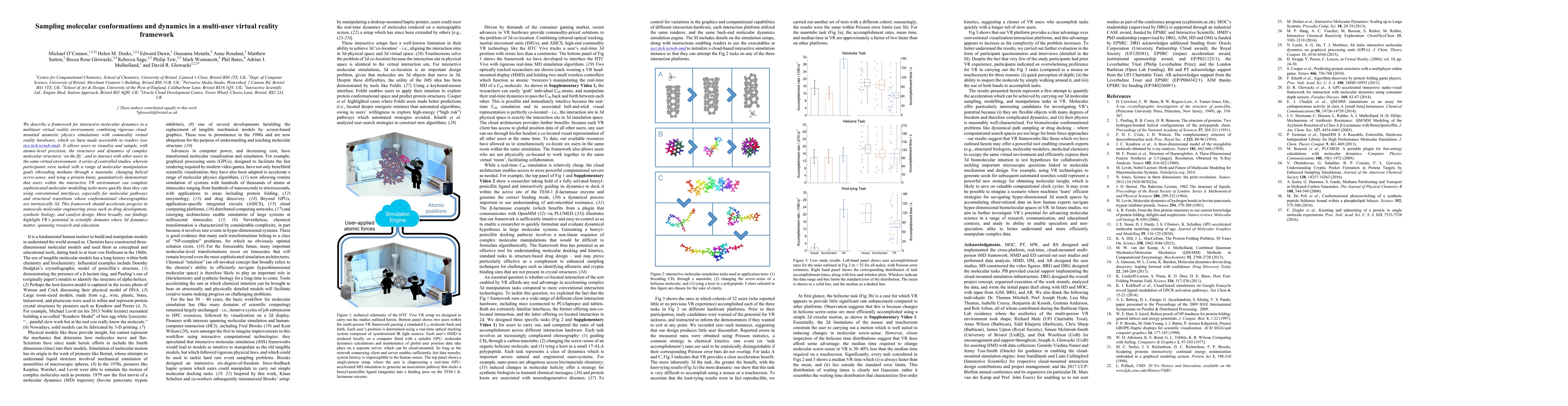 This paper presents a multi-user virtual reality framework for interactive molecular dynamics, combining cloud-based atomistic simulations with VR hardware to enable real-time visualization and manipulation of molecular structures. Controlled studies show that users can complete complex molecular tasks faster in VR than with conventional interfaces, suggesting VR's potential to advance nanoscale engineering and education.