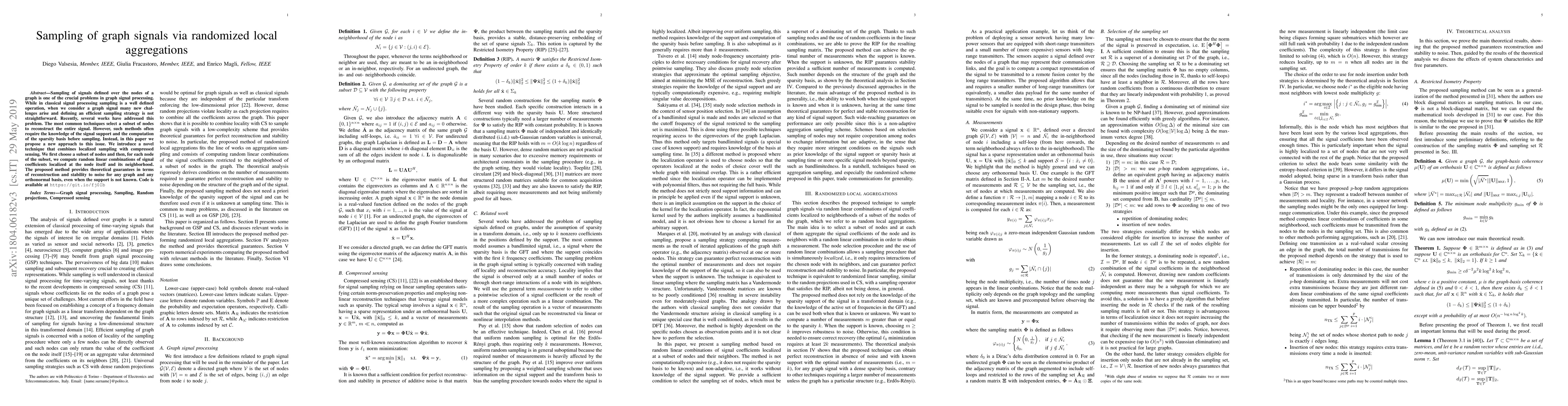 Sampling of signals defined over the nodes of a graph is one of the crucial problems in graph signal processing. While in classical signal processing sampling is a well defined operation, when we consider a graph signal many new challenges arise and defining an efficient sampling strategy is not straightforward. Recently, several works have addressed this problem. The most common techniques select a subset of nodes to reconstruct the entire signal. However, such methods often require the knowledge of the signal support and the computation of the sparsity basis before sampling. Instead, in this paper we propose a new approach to this issue. We introduce a novel technique that combines localized sampling with compressed sensing. We first choose a subset of nodes and then, for each node of the subset, we compute random linear combinations of signal coefficients localized at the node itself and its neighborhood. The proposed method provides theoretical guarantees in terms of reconstruction and stability to noise for any graph and any orthonormal basis, even when the support is not known.