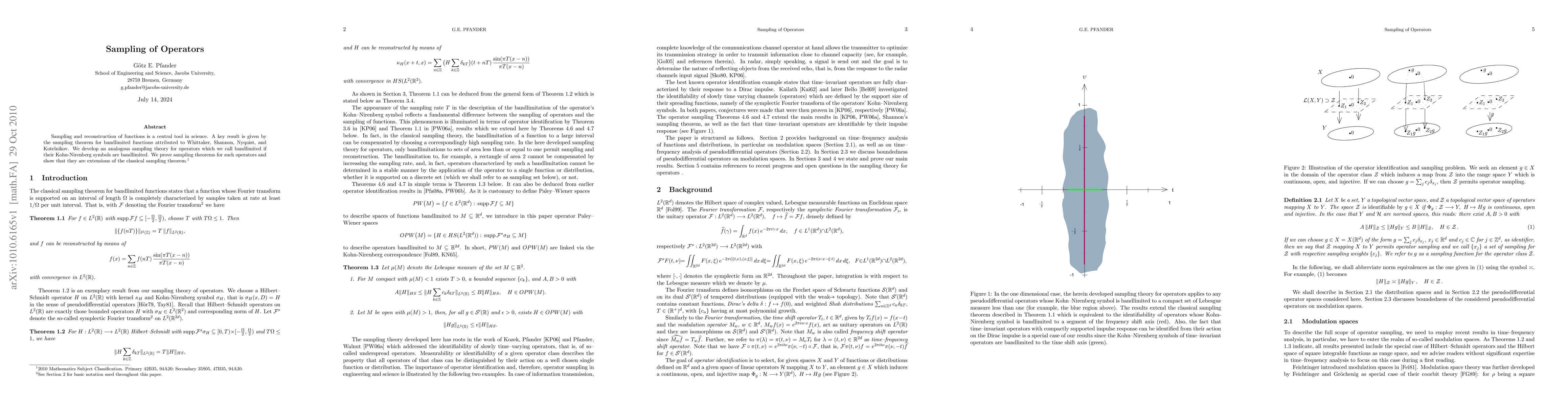 Sampling and reconstruction of functions is a central tool in science. A key result is given by the sampling theorem for bandlimited functions attributed to Whittaker, Shannon, Nyquist, and Kotelnikov. We develop an analogous sampling theory for operators which we call bandlimited if their Kohn-Nirenberg symbols are bandlimited. We prove sampling theorems for such operators and show that they are extensions of the classical sampling theorem.