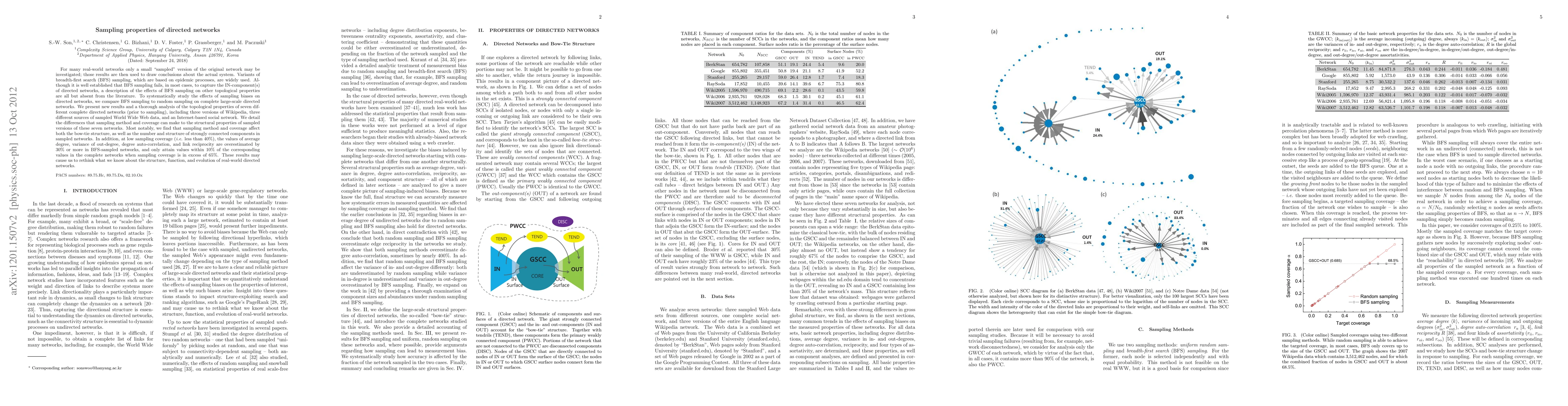 For many real-world networks only a small "sampled" version of the original network may be investigated; those results are then used to draw conclusions about the actual system. Variants of breadth-first search (BFS) sampling, which are based on epidemic processes, are widely used. Although it is well established that BFS sampling fails, in most cases, to capture the IN-component(s) of directed networks, a description of the effects of BFS sampling on other topological properties are all but absent from the literature. To systematically study the effects of sampling biases on directed networks, we compare BFS sampling to random sampling on complete large-scale directed networks. We present new results and a thorough analysis of the topological properties of seven different complete directed networks (prior to sampling), including three versions of Wikipedia, three different sources of sampled World Wide Web data, and an Internet-based social network. We detail the differences that sampling method and coverage can make to the structural properties of sampled versions of these seven networks. Most notably, we find that sampling method and coverage affect both the bow-tie structure, as well as the number and structure of strongly connected components in sampled networks. In addition, at low sampling coverage (i.e. less than 40%), the values of average degree, variance of out-degree, degree auto-correlation, and link reciprocity are overestimated by 30% or more in BFS-sampled networks, and only attain values within 10% of the corresponding values in the complete networks when sampling coverage is in excess of 65%. These results may cause us to rethink what we know about the structure, function, and evolution of real-world directed networks.