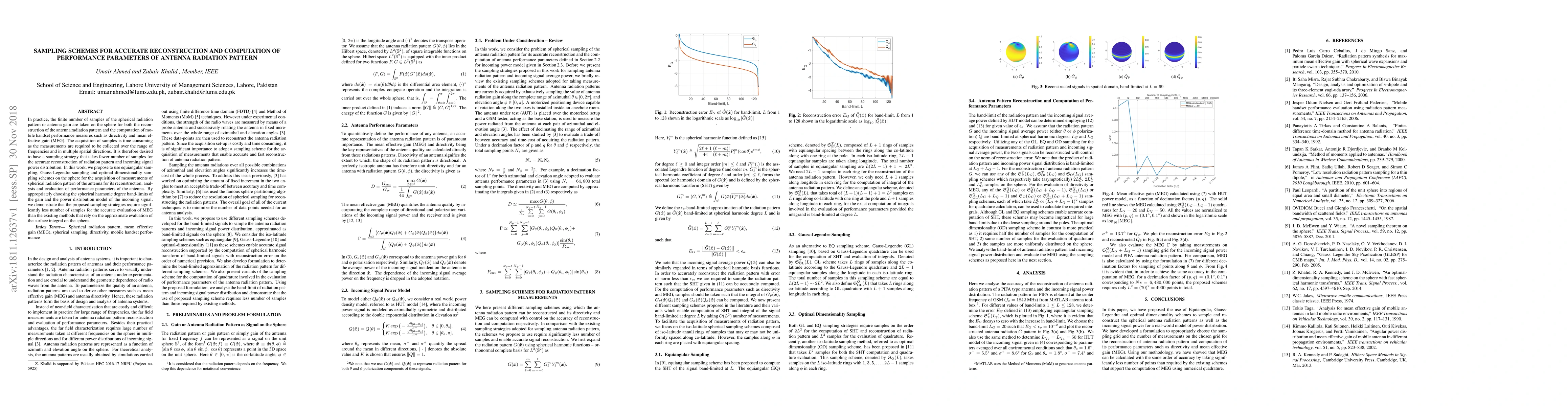 The paper proposes three sampling schemes for accurate reconstruction of antenna radiation patterns and computation of performance parameters like directivity and mean effective gain. It shows that these new methods require significantly fewer samples than existing methods, improving efficiency.