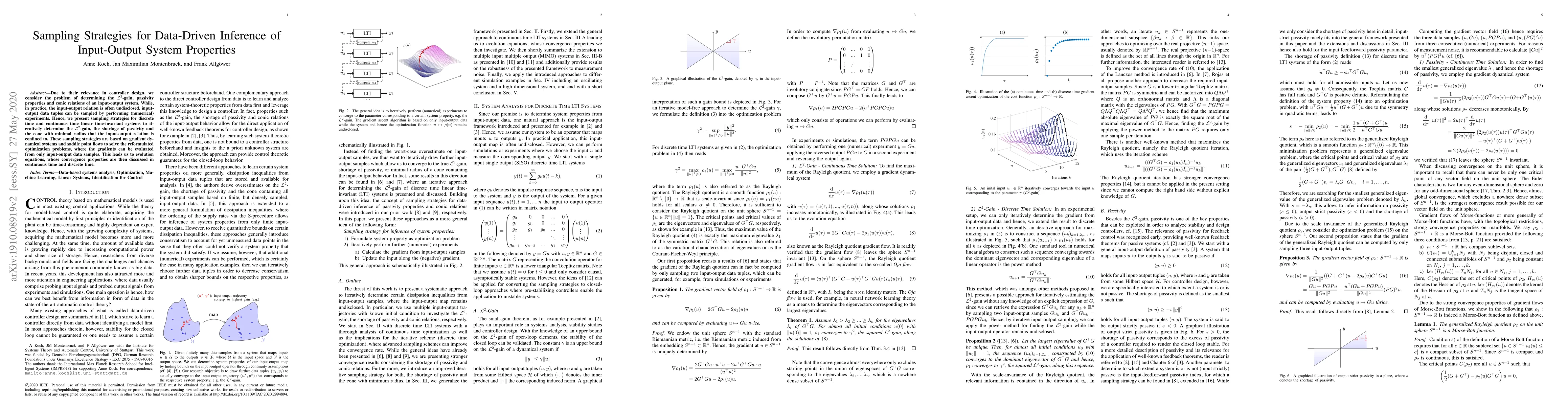 This paper proposes sampling strategies for inferring $\mathcal{L}^2$-gain, passivity properties, and conic relations of input-output systems from data. It utilizes gradient dynamical systems and saddle point flows to iteratively determine these properties based on sampled input-output data, discussing convergence in both continuous and discrete time.