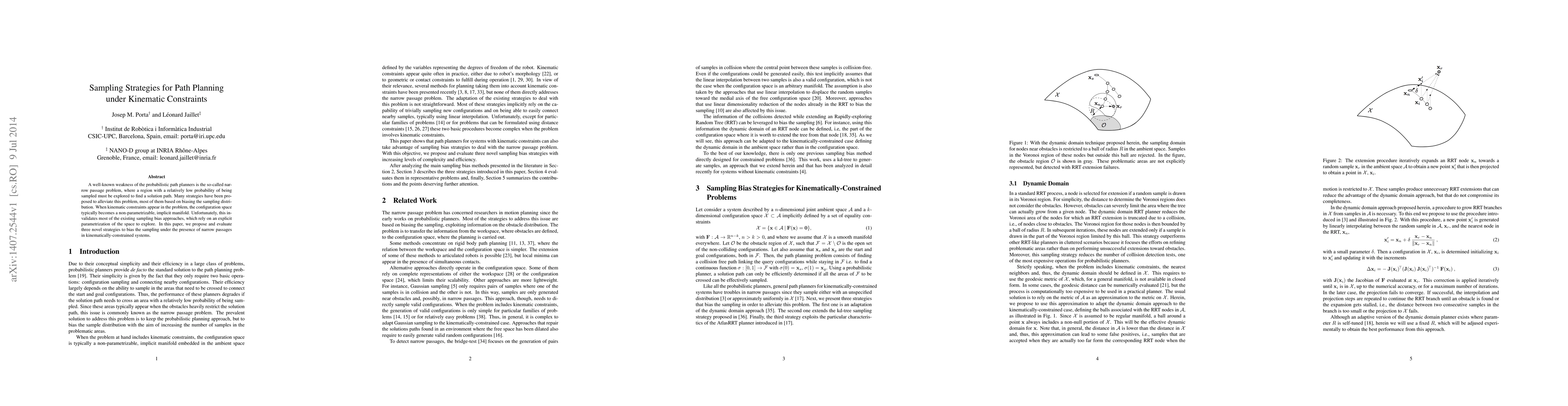 Researchers propose three novel strategies to bias sampling in path planning under kinematic constraints, addressing the narrow passage problem and improving exploration of non-parametrizable configuration spaces.