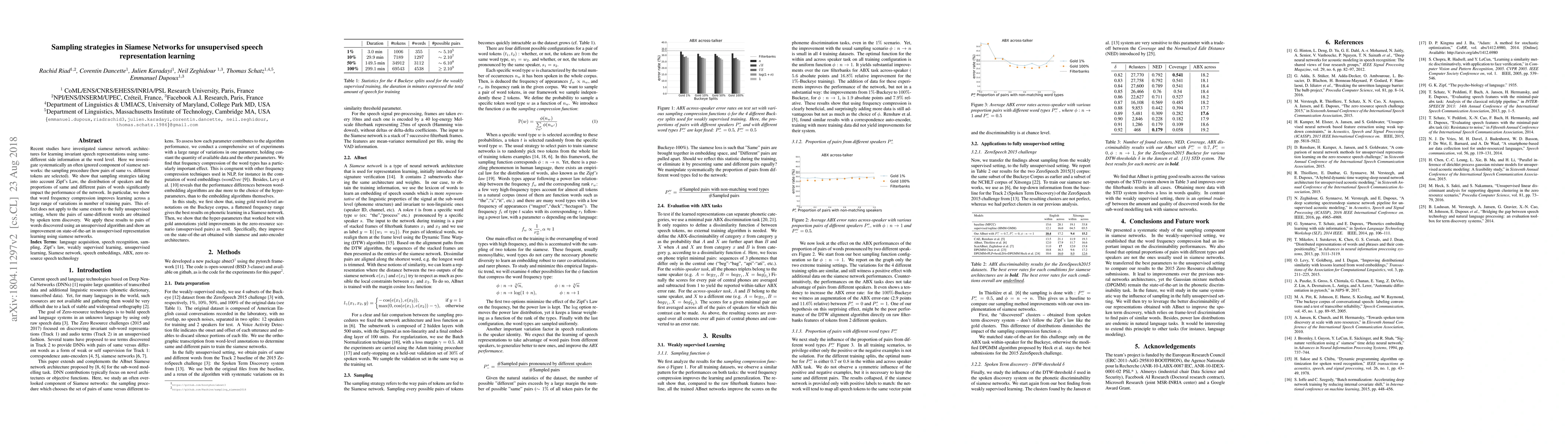 This paper explores how different sampling strategies in siamese networks affect unsupervised speech representation learning. It finds that considering Zipf's Law and speaker distribution in sampling improves network performance, particularly with word frequency compression, although this effect is less pronounced in fully unsupervised settings.
