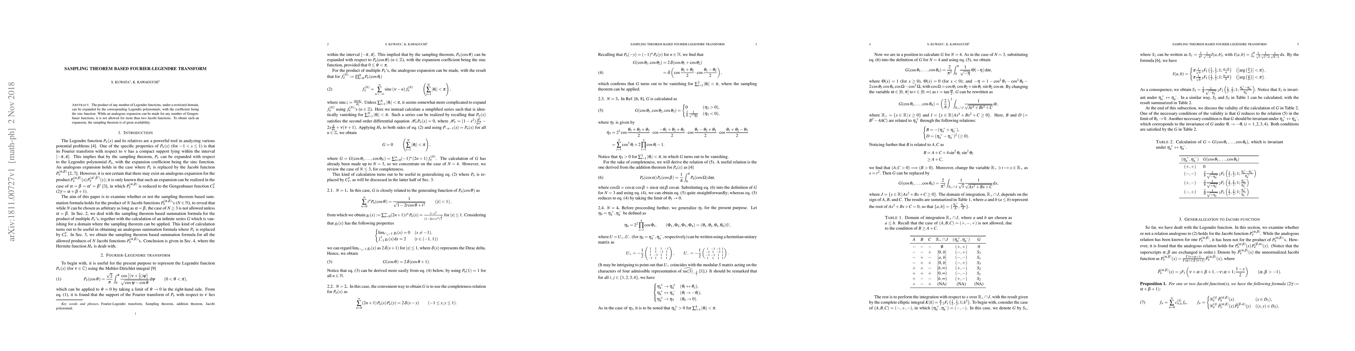 Summary: The paper explores the expansion of products of Legendre functions using Legendre polynomials and the sinc function, leveraging the sampling theorem for such expansions, while noting limitations in analogous expansions for Jacobi functions.