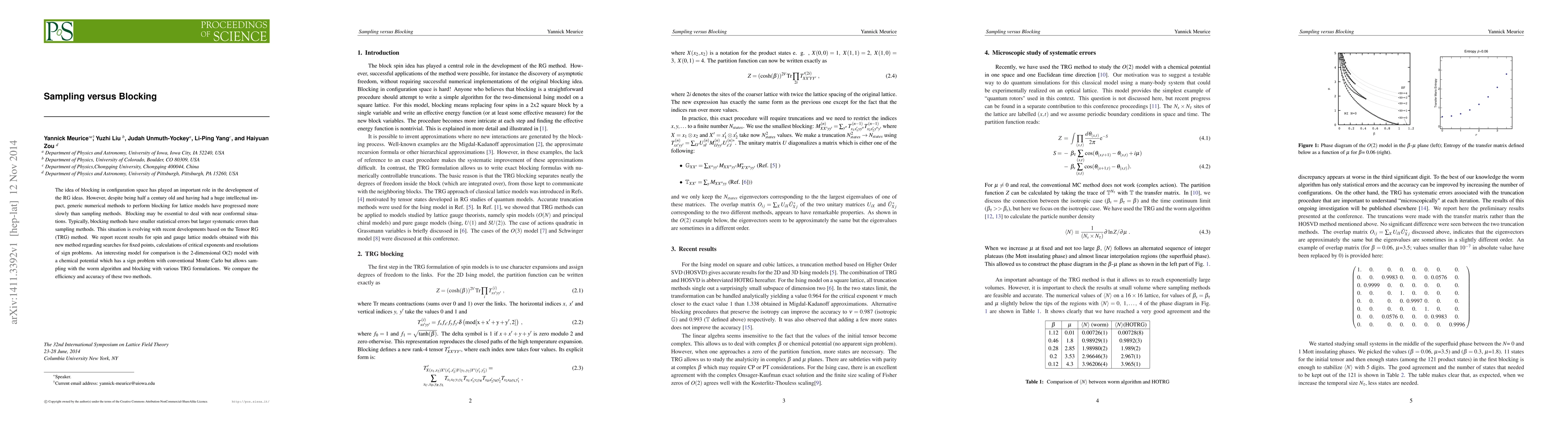 The idea of blocking in configuration space has played an important role in the development of the RG ideas. However, despite being half a century old and having had a huge intellectual impact, generic numerical methods to perform blocking for lattice models have progressed more slowly than sampling methods. Blocking may be essential to deal with near conformal situations. Typically, blocking methods have smaller statistical errors but larger systematic errors than sampling methods. This situation is evolving with recent developments based on the Tensor RG (TRG) method. We report recent results for spin and gauge lattice models obtained with this new method regarding searches for fixed points, calculations of critical exponents and resolutions of sign problems. An interesting model for comparison is the 2-dimensional O(2) model with a chemical potential which has a sign problem with conventional Monte Carlo but allows sampling with the worm algorithm and blocking with various TRG formulations. We compare the efficiency and accuracy of these two methods.