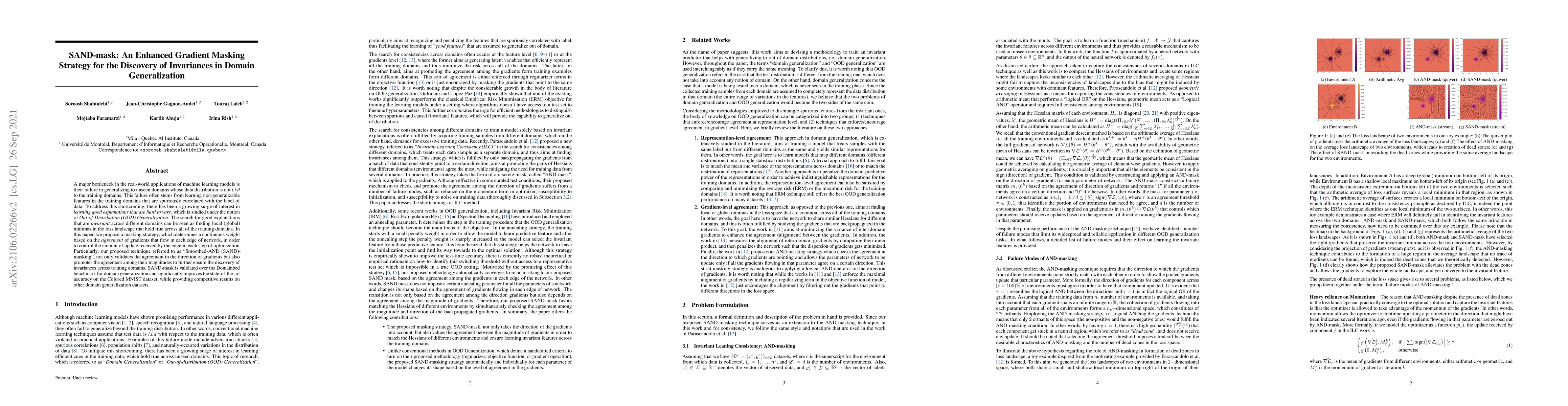 A major bottleneck in the real-world applications of machine learning models is their failure in generalizing to unseen domains whose data distribution is not i.i.d to the training domains. This failure often stems from learning non-generalizable features in the training domains that are spuriously correlated with the label of data. To address this shortcoming, there has been a growing surge of interest in learning good explanations that are hard to vary, which is studied under the notion of Out-of-Distribution (OOD) Generalization. The search for good explanations that are \textit{invariant} across different domains can be seen as finding local (global) minimas in the loss landscape that hold true across all of the training domains. In this paper, we propose a masking strategy, which determines a continuous weight based on the agreement of gradients that flow in each edge of network, in order to control the amount of update received by the edge in each step of optimization. Particularly, our proposed technique referred to as "Smoothed-AND (SAND)-masking", not only validates the agreement in the direction of gradients but also promotes the agreement among their magnitudes to further ensure the discovery of invariances across training domains. SAND-mask is validated over the Domainbed benchmark for domain generalization and significantly improves the state-of-the-art accuracy on the Colored MNIST dataset while providing competitive results on other domain generalization datasets.