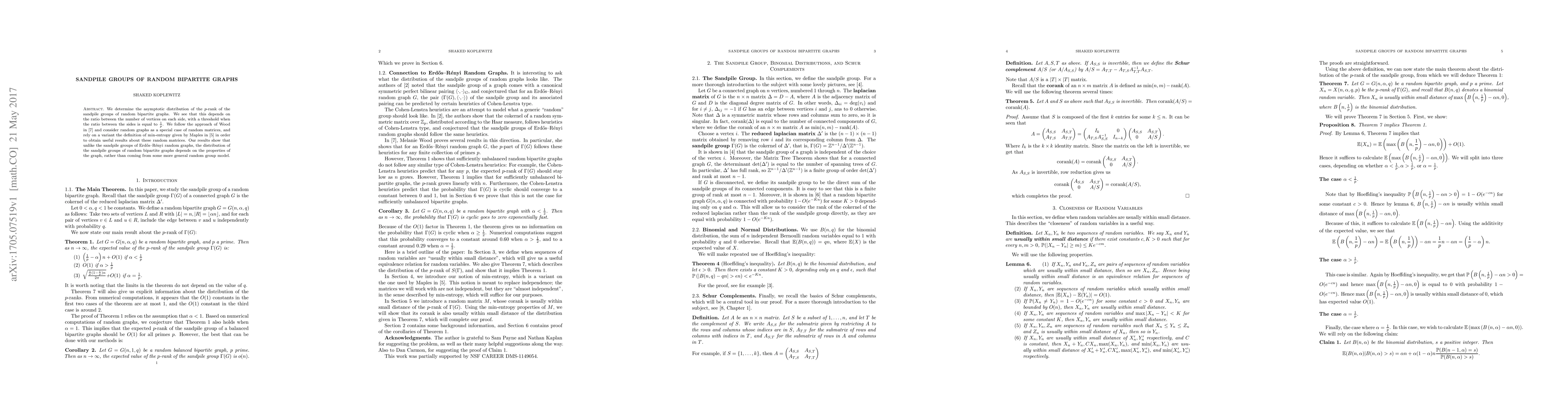 This paper investigates the asymptotic distribution of the p-rank of sandpile groups in random bipartite graphs, revealing that it depends on the ratio of vertices between the two sides, with a critical threshold at a ratio of 1/p. Unlike Erdos-Renyi graphs, the distribution here is influenced by the specific properties of the bipartite graph.